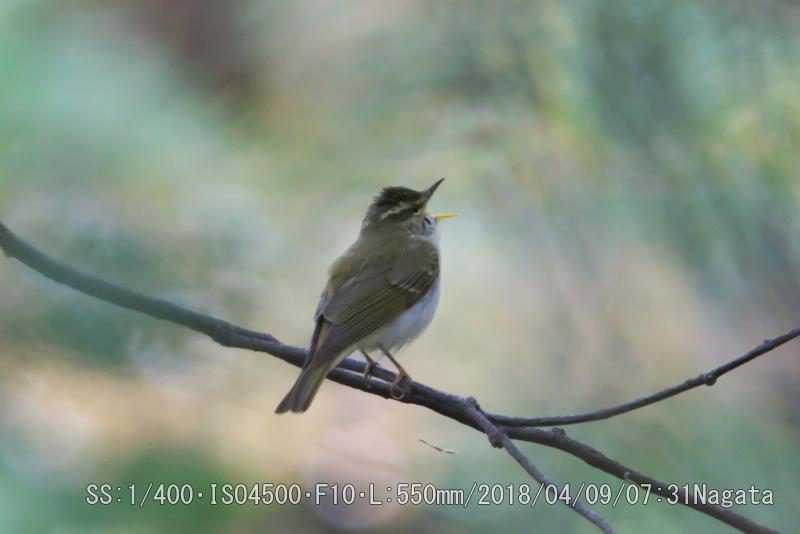 ぱっと見た目はウグイス(16CM)だが大きさ比較するとやはり小さい。センダイムシクイの特徴は? 12.5~13cm 外見の特徴。白色の眉斑。下が橙黄色になっている嘴。淡い緑褐色の翼。ネットで分かった。白色の頭央線(個体差あり)。