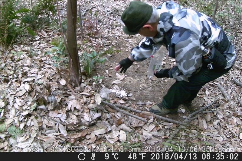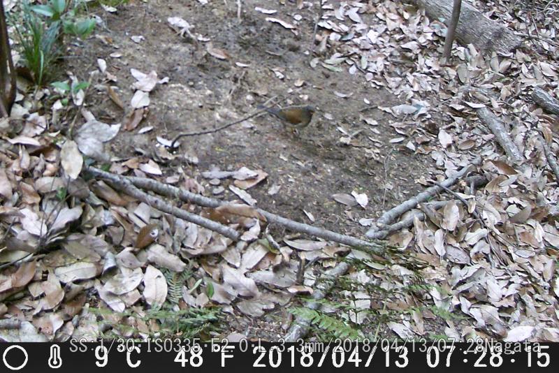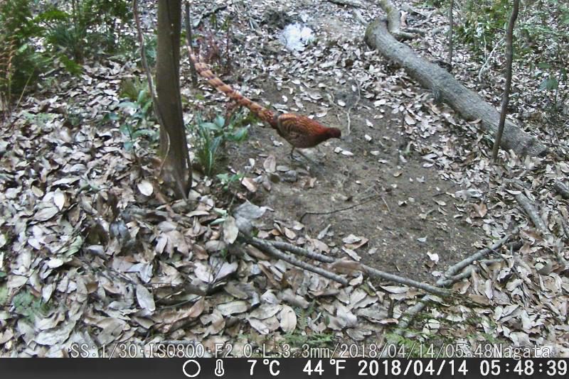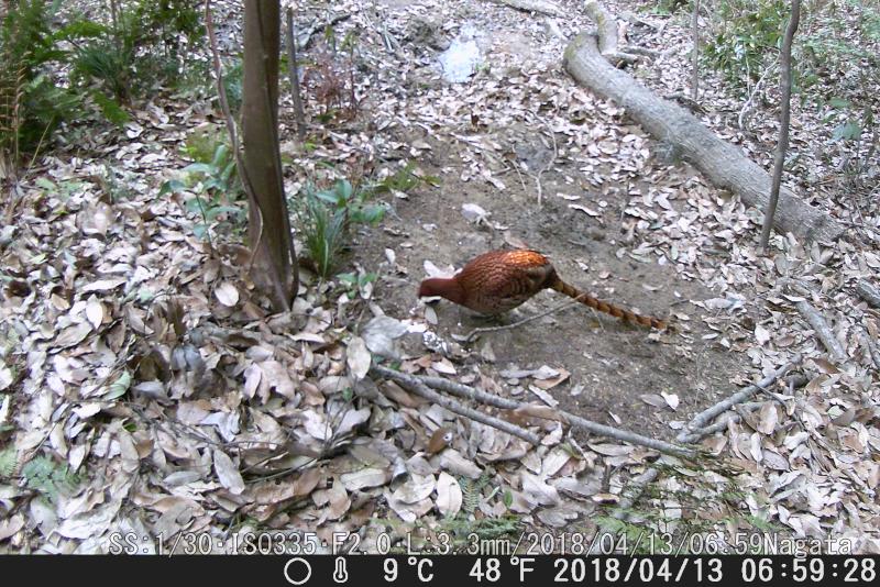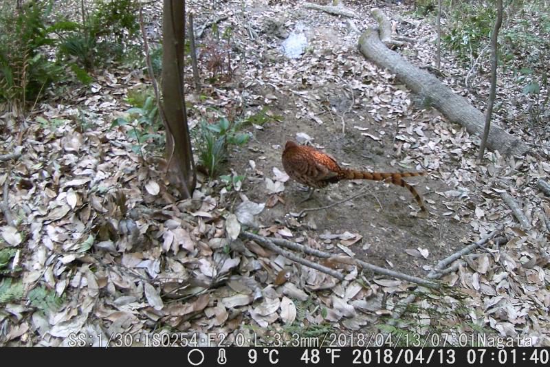 餌は麦、ヤマドリ用だけにした。ヤマドリは餌後に来て、全部食べ尽くした。この鳥は何、種類は?イノシシ親子。来てるが餌無しで帰った。気の毒な気もする。定刻に来たヤマドリだが、残念ながら餌まきのまえだ。きょうも餌は麦のみ。ヌタ場したで麦を置いたがカメラに写って無い。センサー外だろう。