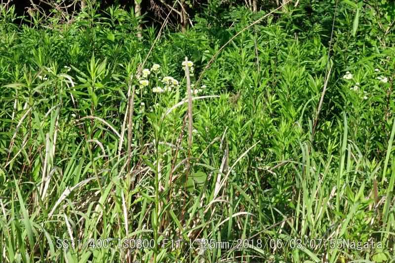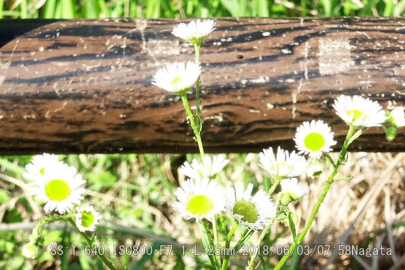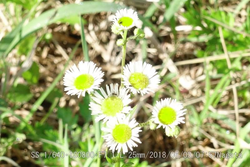 ハイキングコースの登り口・谷田川上流に姫女苑(ヒメジョオン)が咲いていたので数株を土ごと貰った。雑草だから。植えて水をたっぷり上げたがやはり萎れた。堤防内、外にも咲いていた。次回は雨の日を狙って移植したほうが良い。