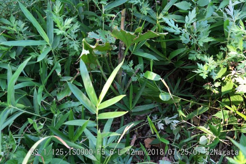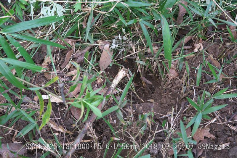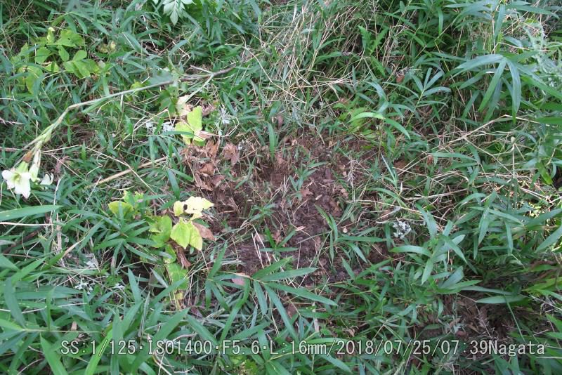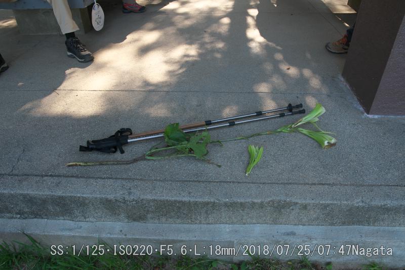 一夜にして、根こそぎ持って行った奴がいる。と中間から知らされた。よく見ると花本体は折り曲げられて無残に残されていた。どうも、イノシシが根を掘って食べたようだ。花は展望台で飾って貰った。幹の部分を挿し木にした。