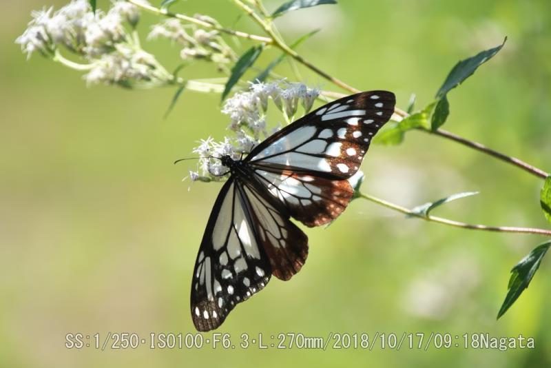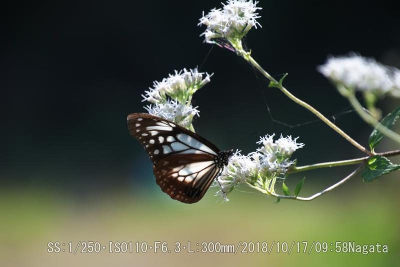 辻の新池ヒヨドリバナに待望のアサギマダラが来た。きょうは、たまたま堤防奥のサッチング作業を一時間ほどして。時間を潰した。陽が射してそろそろアサギマダラが来る時刻かなとヒヨドリ花を見にいったら一匹居た。この蝶は一時間半ほど蜜を吸ってエネルギー補給した。それでも名残惜しそうに飛んで行った。ほかにもう一匹も来たが10分程度で飛んで行った。この堤防(大東市)にアサギマダラに寄って貰いたくてヒヨドリバナを植えて希望が叶ったので、つい興奮して948枚も撮っていた(^_^;
