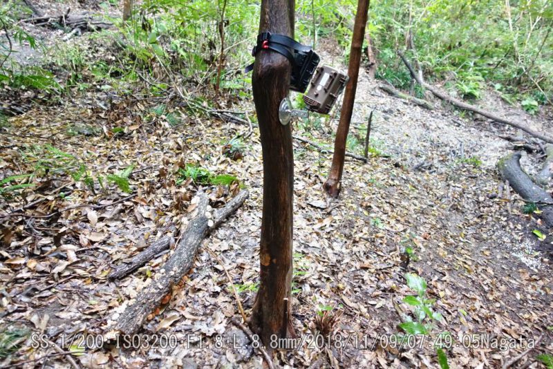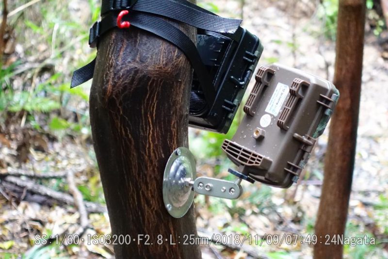 朝から雨だったが8時頃には止んだ。トレイルカメラセンサの調子が悪いとamazonさんへ連絡したら交換で新品が届いた。さっそくにセットしてみた。取付木の横へ取り付ける事が出来るので登山道から見え難い。画像がその場で確認出来るのでアングル設定が簡単だ。