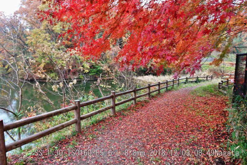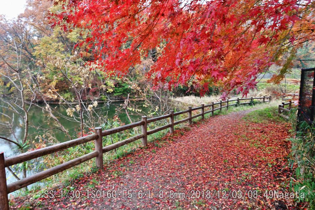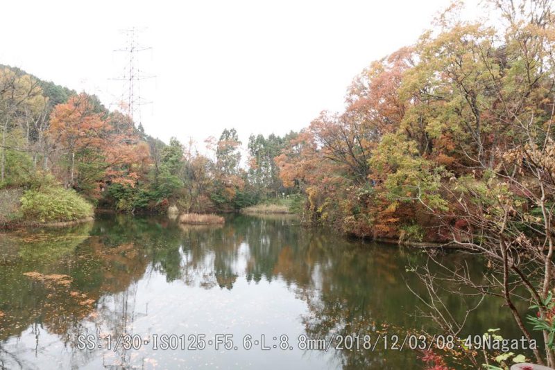桜池 10日ぐらい前の温度4℃が効いたかな。一挙に変色した。上より下(落ち葉)が綺麗だ。