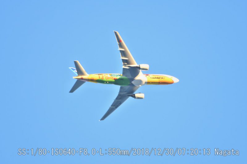 突然に辻の新池(標高207M) 上 空をド派手なジェット旅客機が通り過ぎた。慌ててシャッターを切った。連写した15枚の殆どが手ブレ、ピンボケだった。一枚だけ使えそうなのが有った。望遠ズームとは言え、トリミング無しでこの大きさだ。 ジェット旅客機飛行高度としてはかなり低空だ。 機体番号が何とか読めた。日の丸も見えた。調べたらANAの特別塗装機「HELLO 2020 JET」だった。