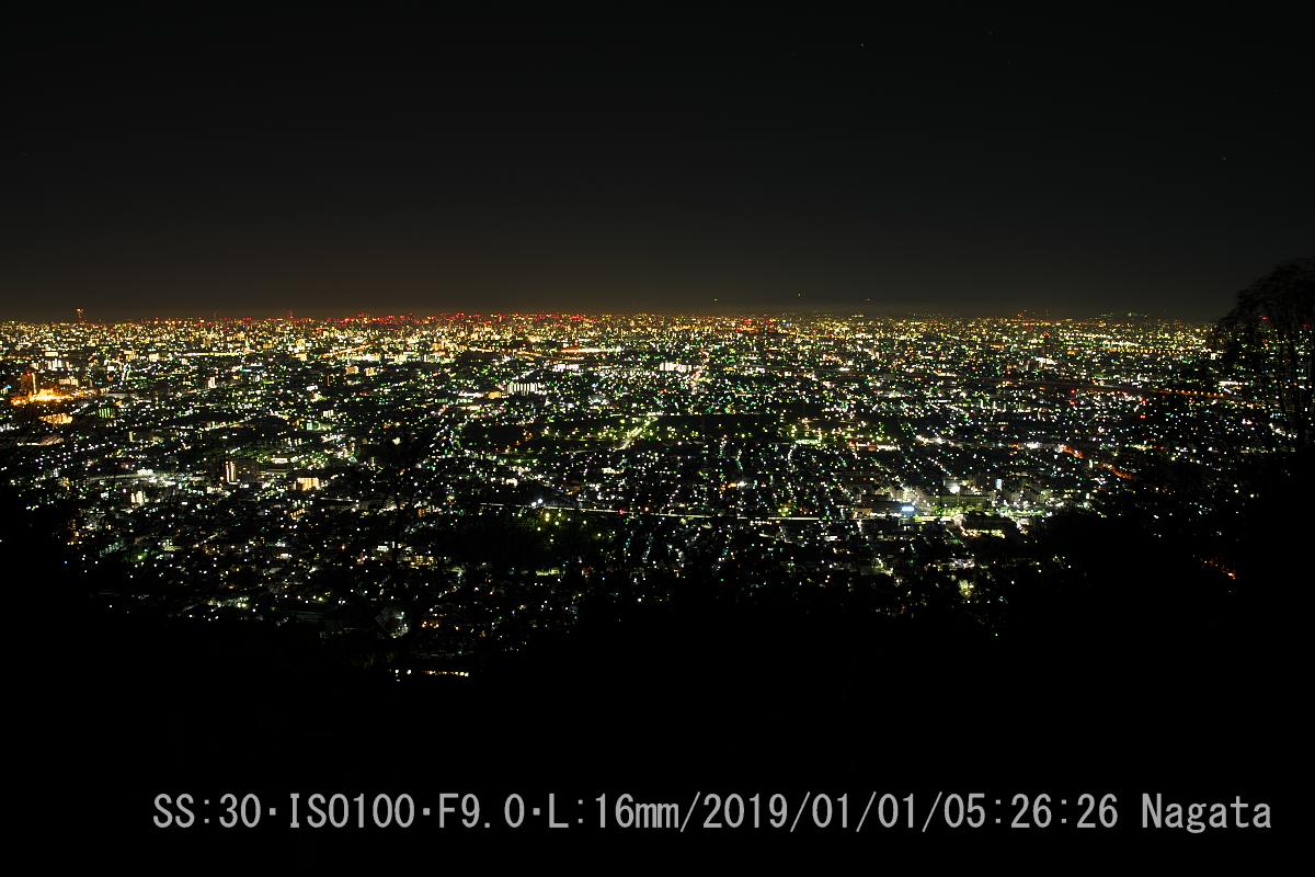 2019年 初日の出撮影ついでに夜景を撮り直した。ISO100に拘りすぎた結果、SSを30Sにした。手ブレが起きやすいのでISO400~800ぐらいにしてF値絞る、SS上げるほうが良さそうだ。撮影時間帯は平日の19時~23時がベストのようだけどなぁ。2、3月の寒い頃、空気が澄みやすい頃に再度挑戦だ。※雪を降らした北西の風(北風)が吹いた翌日で晴天、湿度の低い日が澄んでいるようだ。