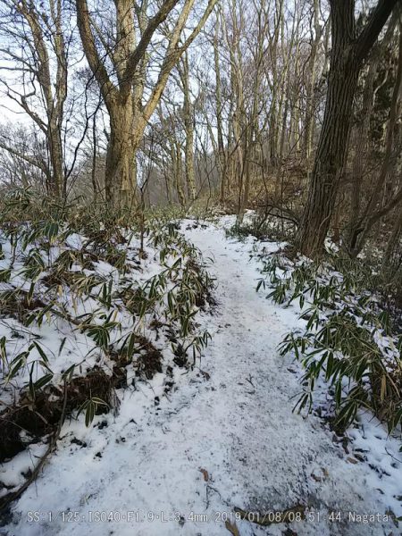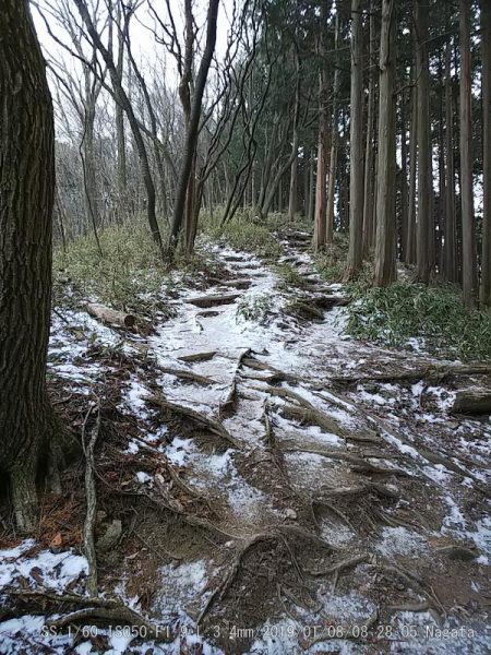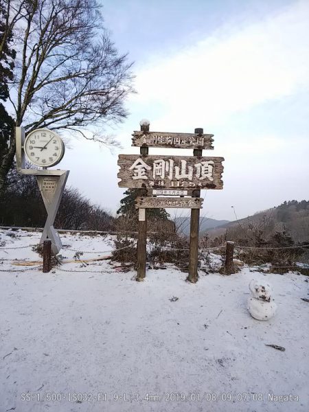 府立第一駐車場から4時間かけて廻った。8合目辺りから雪が凍っていたのでアイゼンを着けた。 山頂広場葛木神社裏の山に葛城山の三角点が有るようだ。 この辺りからアイゼンを着けた雪は少ないが凍っているのでよく滑る