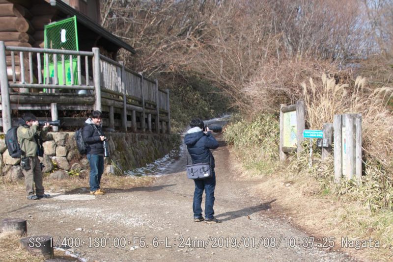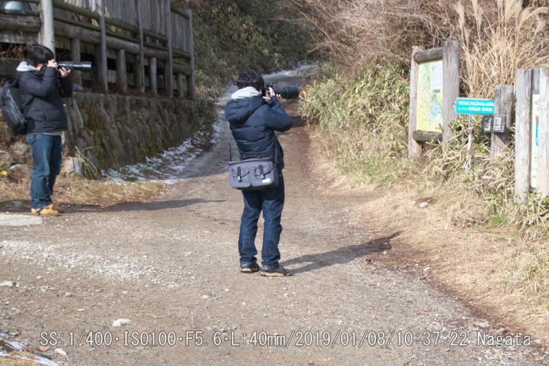 結構、有名のようだ。ネットで調べたら画像が沢山あった。学生らしき三人組が望遠レンズで撮ってました。足下にもいます。実際手にも乗ってた。 こんなに近くてピント合う?餌付けに慣れていた。カメラ慣れしていても落ち着きません。様子をみてます。足下に来たが本人気付かず