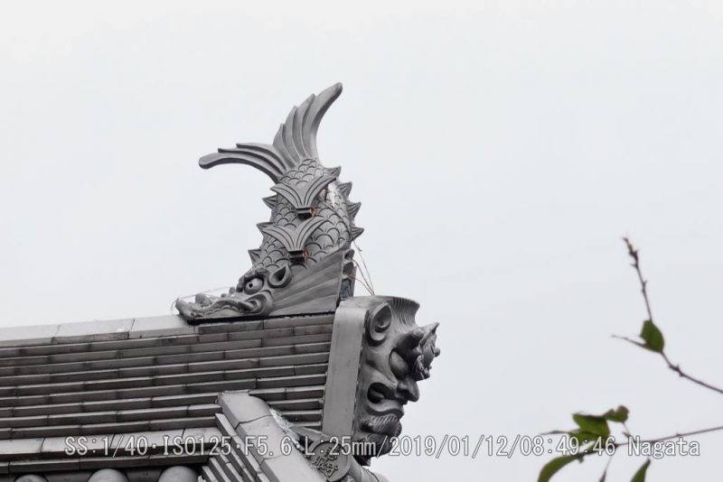 野崎観音さんの鬼瓦が雷にやられてのがいつの間にか修復されていた。
