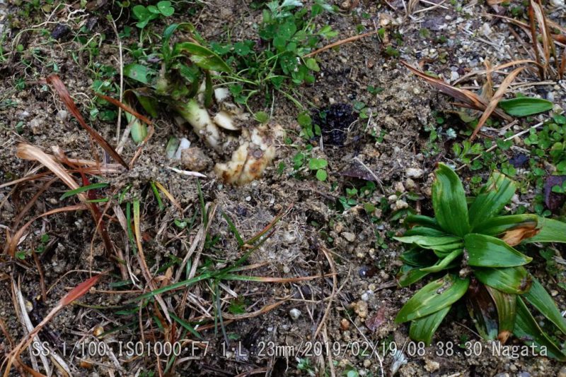 昨夜から雨だ。望遠ズームは持って上がらず。身軽のリュックだ。堤防に猪が来た気配。百合根は食べてない?。掘り起こされただけだった。とりあえず猪除けの薬剤を撒いて埋め戻した。