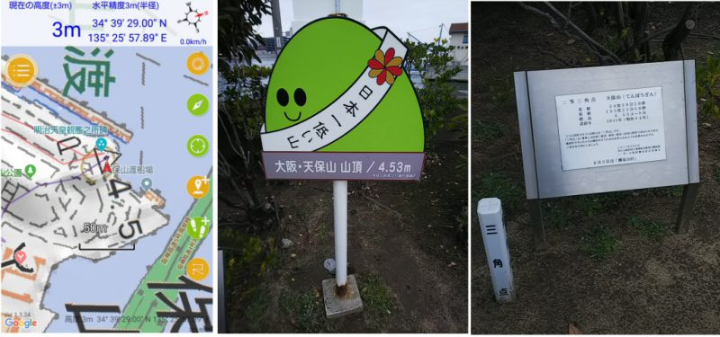 早朝6時に出発してJR→地下鉄と乗り継いで登山?した。日本一低山(築山)の珍しさだったが行く前の調査では仙台の日和山の次、2番目を知った。折角だから天保山公園に行った。標高4.53mの築山。山頂には二等三角点。2014年4月9日の国土地理院の調査で、日和山(宮城県仙台市)が標高3mの山に認定されたことにより、日本で2番目に低い山となった。スマホのGPSでは2メータだった。安治川では「天保の大川浚」とよばれる浚渫工事が行われ、土砂を安治川河口に積み上げられて 安治川入港の目印とする意図があった。築かれた時の元号から天保山と称されるようになったようだ。