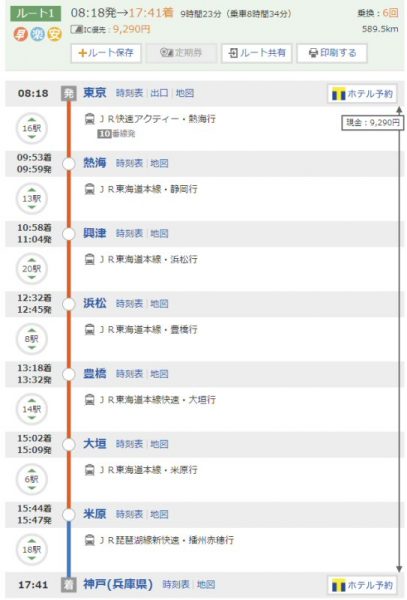 神戸駅に東海道本線と山陽本線の分岐点標識がある。なぜか懐かしくて、つい撮ってしまう。ついで距離を調べるのにYahoo路線情報で検索してみた。東海道本線は在来線になるので9時間20分かかる計算だ。※東海道本線 東京駅 - 神戸駅間 589.3 km ※山陽本線 神戸駅 - 下関駅間 528.1 km