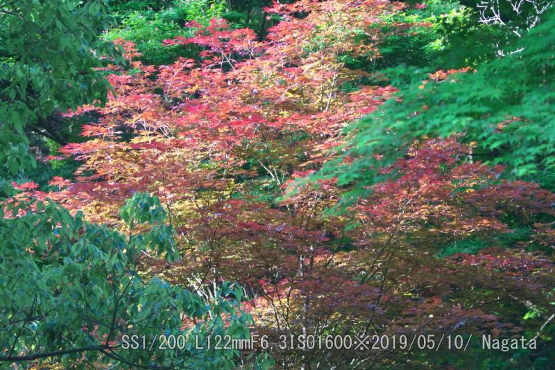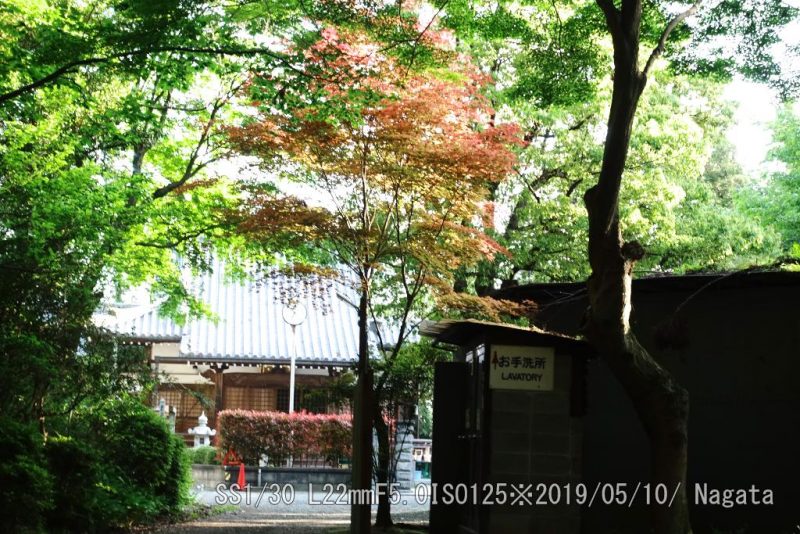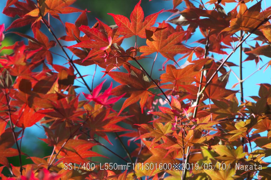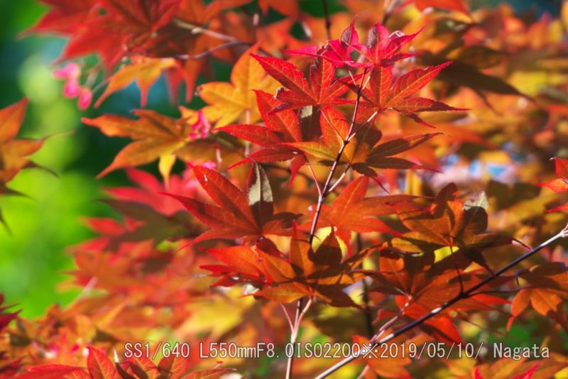 楠公寺トイレ横のモミジが今年も早くも紅葉した。でも緑の葉もある。