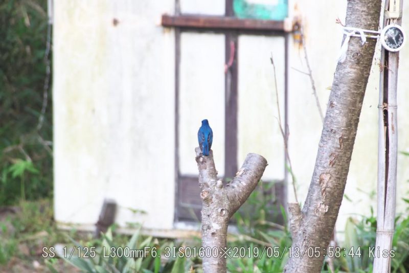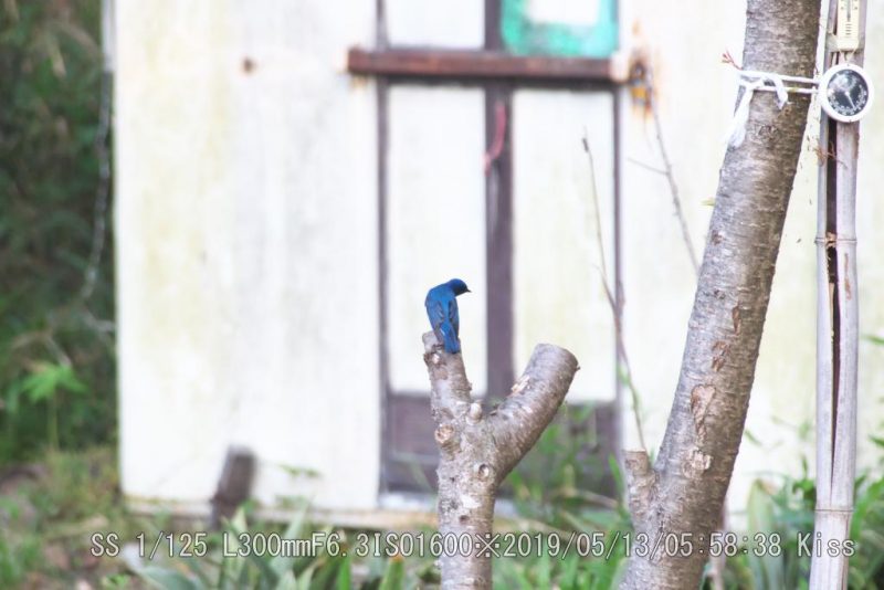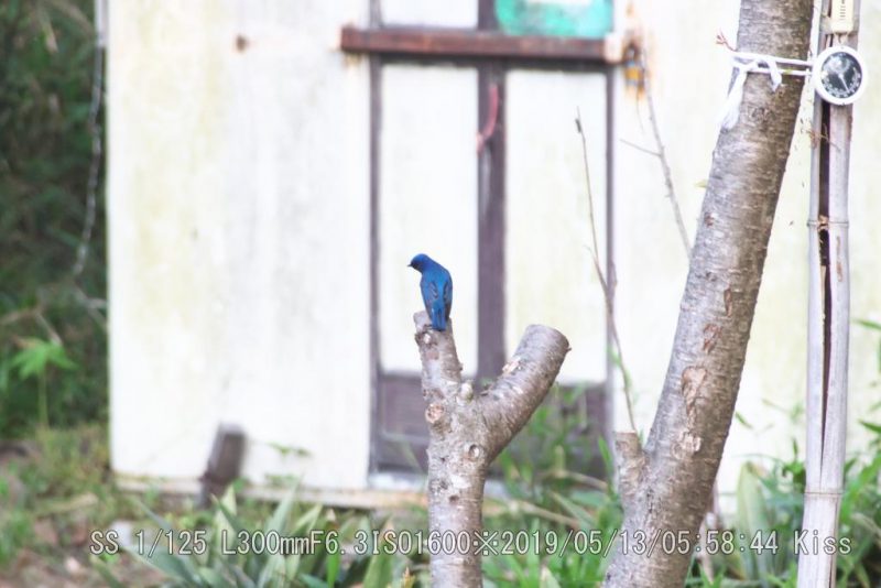 ヒヨドリより少し大きい、飛び方が違う、碧い、と思って検索したらオオルリだった。ほんの数秒間だった。