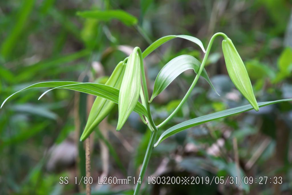 去年より開花が遅れている。毛虫の被害が大きい。この場所の4本、2本は花の部分が取れた。他の場所も風で折れたりしているので、近場で開花が見られるのはここだけだ。