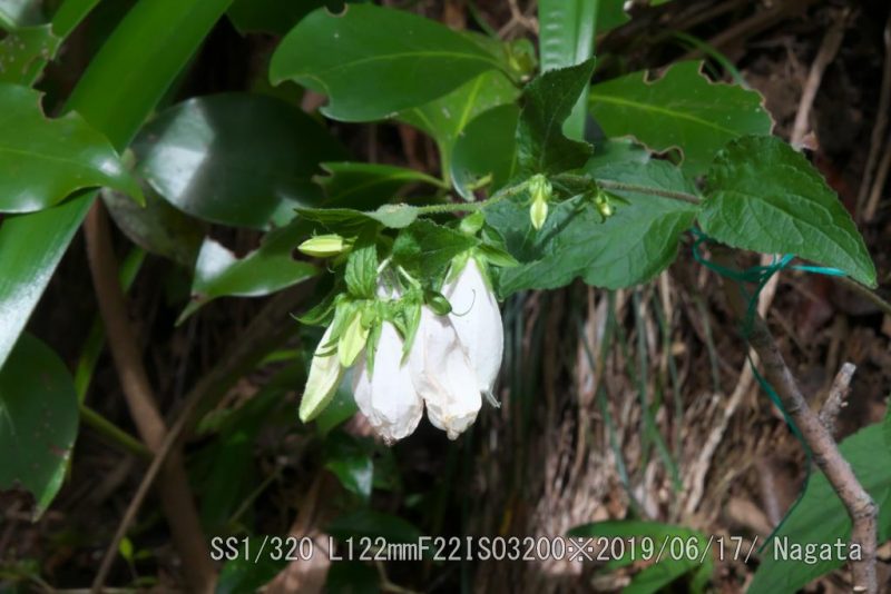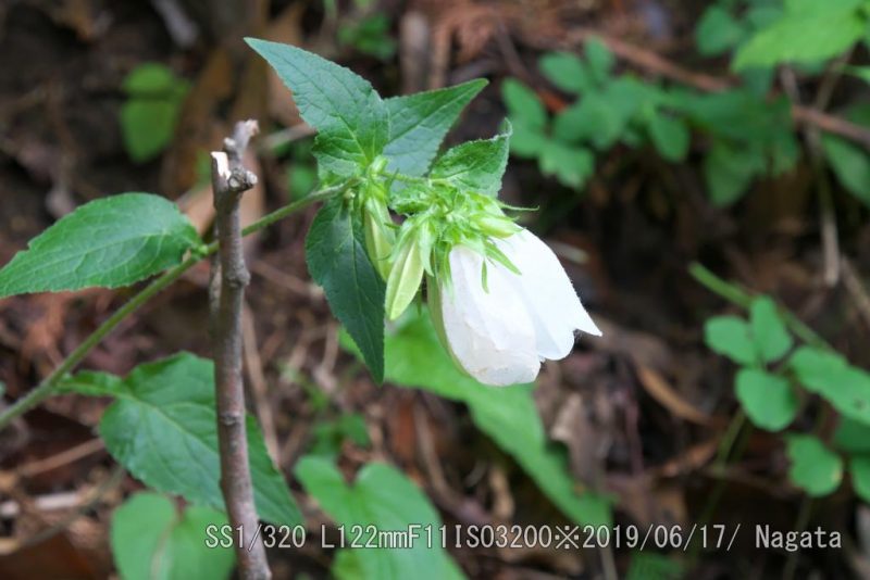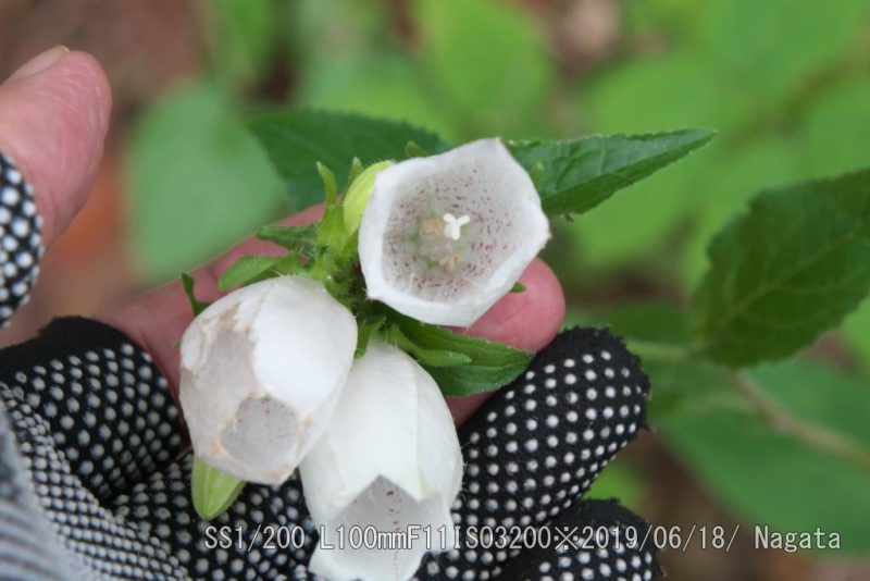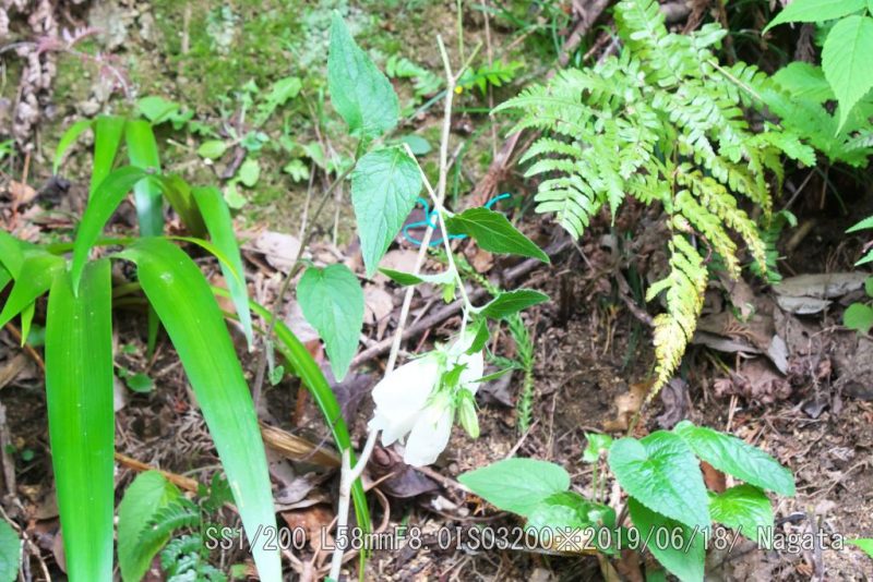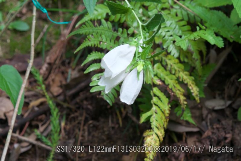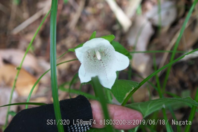キキョウ科の多年草。楠公寺から頂上へ上がるFM塔下に3本咲いていた。茎が細く折れそうだ。木の枝で支えをした。返って茎が折れるかと、山を下りながら気が付いた。次に行ったら自然のままにしようかな。それに花の内側(中)を撮ってみたい。 支えを外した 幹が細いので心配になって行ってみた。やはり一本は折れていた。飯盛城石垣の向こうに2本咲いていた。花の中は6角形だった。