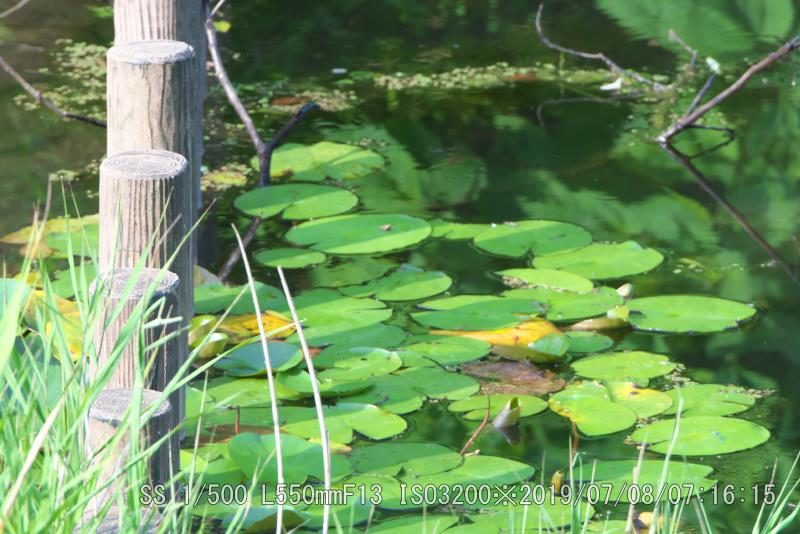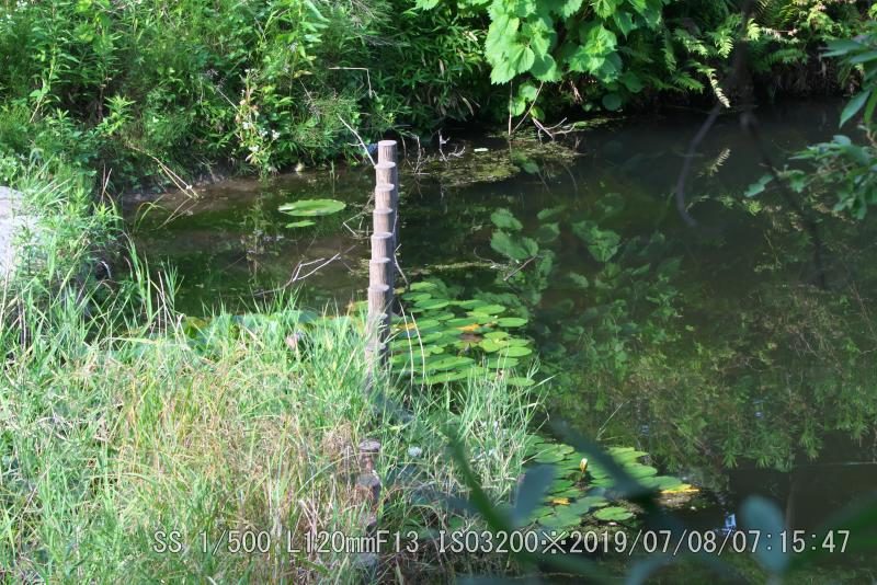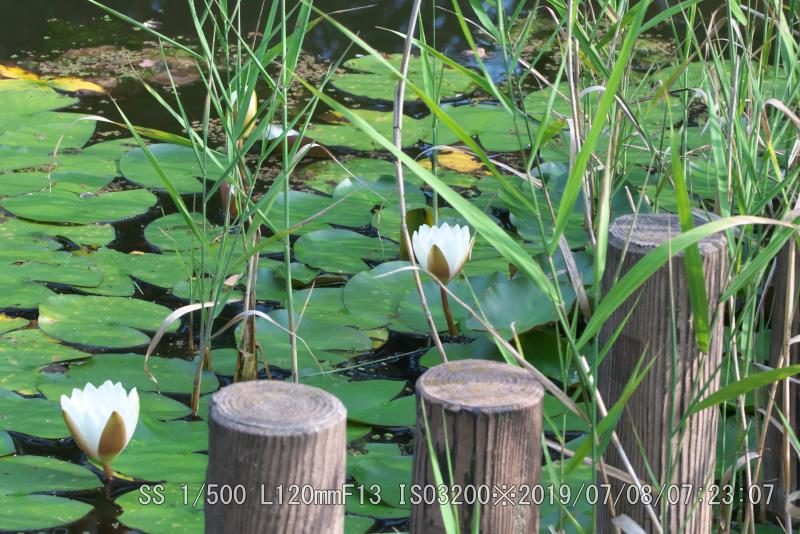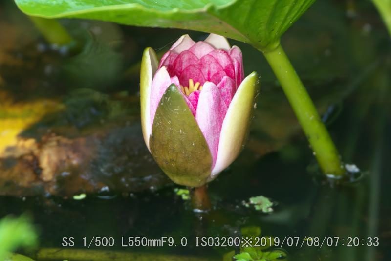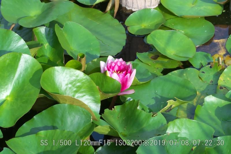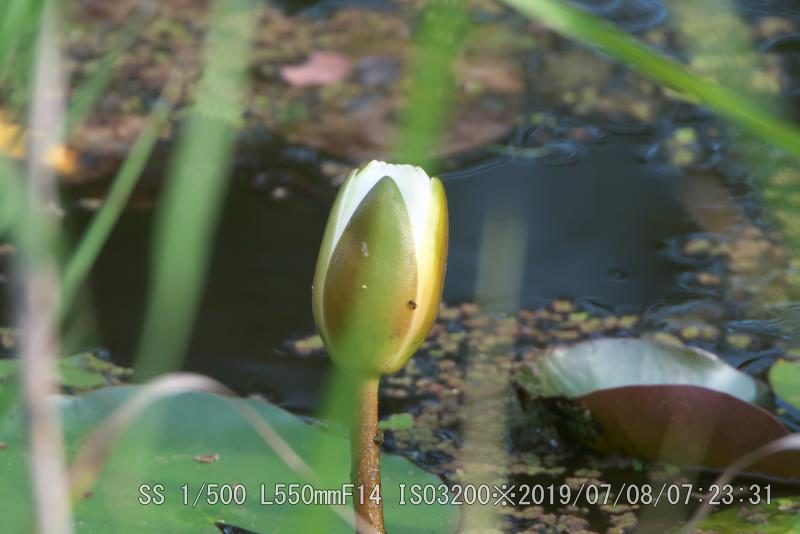 花の寿命。朝に花開いて夕方には閉じるようだ。3日ぐらいで花は閉じて、水の中に沈むとか。昨日に咲いていた位置に花が無い。水中に沈んだのだろう。違う場所で新たに花が開きかけていた。