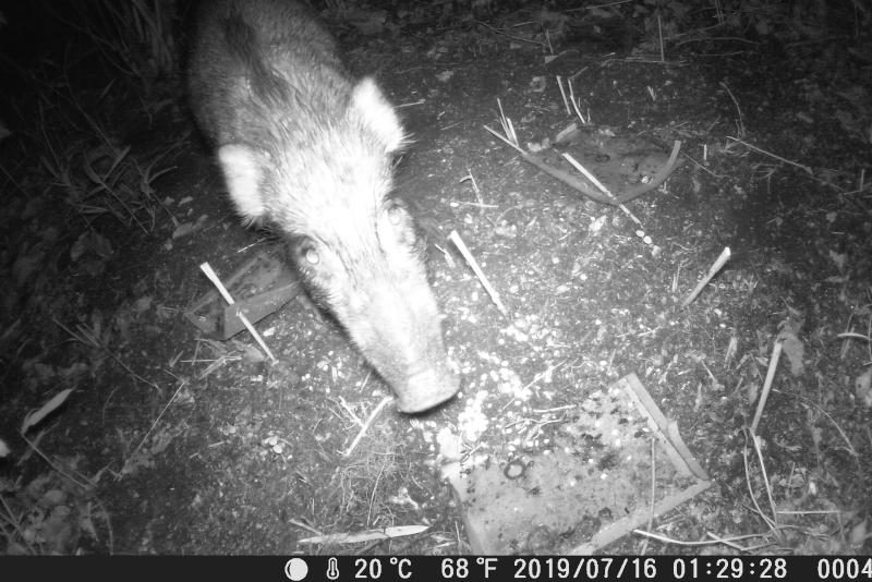 トレイルカメラは相変わらずイノブタ、野ネズミだけだ。いずれヤマドリが足を伸ばしてくれるだろう。200メータぐらい先までは来ている気配がある。餌を徐々に近づけて撒いている。
