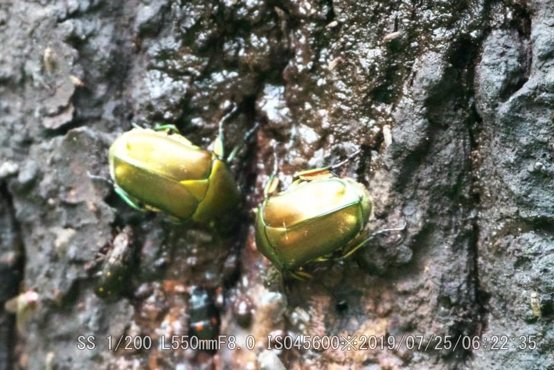 コウチュウ目コガネムシ科ハナムグリ亜科に属する昆虫。いつか蜜吸にオオムラサキが来るかも、と思いながら気になる樹だ。朝早いからムリを承知で一応寄ってみた。