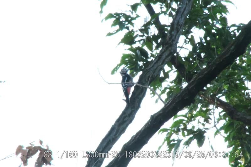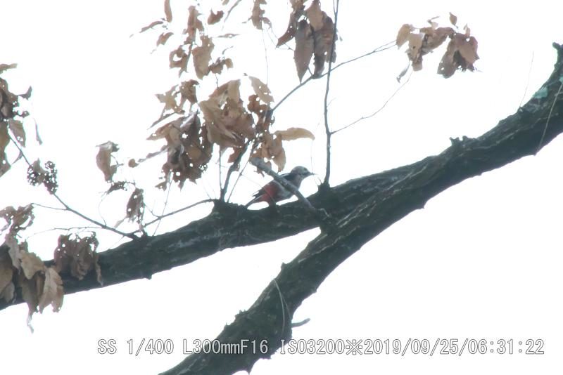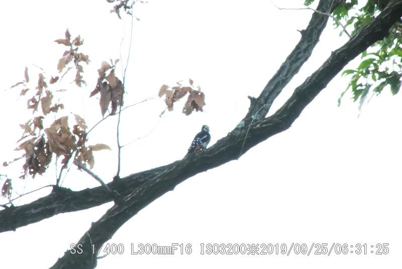 NHKFMタワー広場で見かけた。露出補正を失敗した(間に合わなかった)何とか写っていたので画像加工処理ソフト(SYLKYPIX)でプラス補正&トリミングして、初めてアカゲラの色がでた。