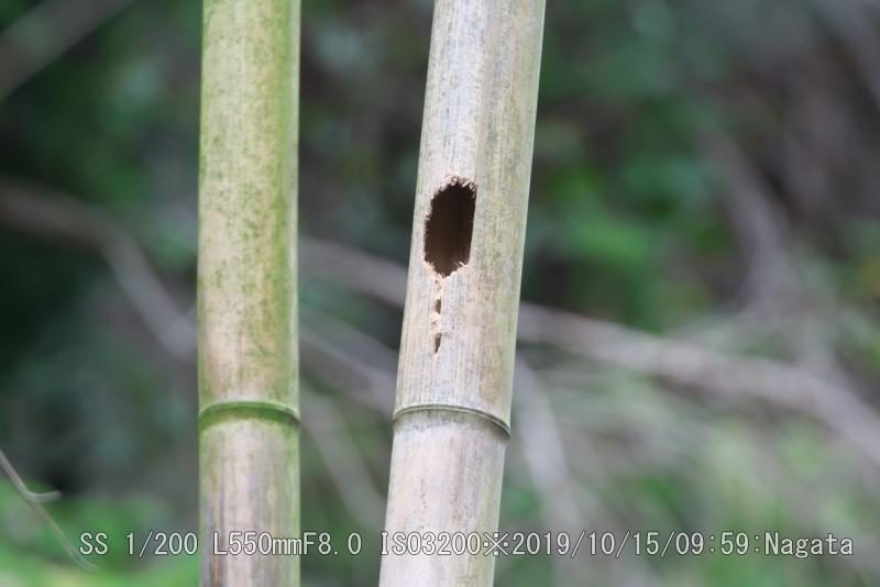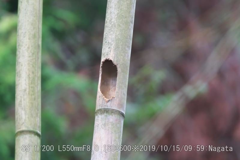 アオゲラ20回目の穴だ。少しだけ突っついてた跡はそのままだが、近くを掘ってあった。上側の別の穴も拡張されてた。アオゲラは、その後見かけない。ドラミングも聞いて無い。