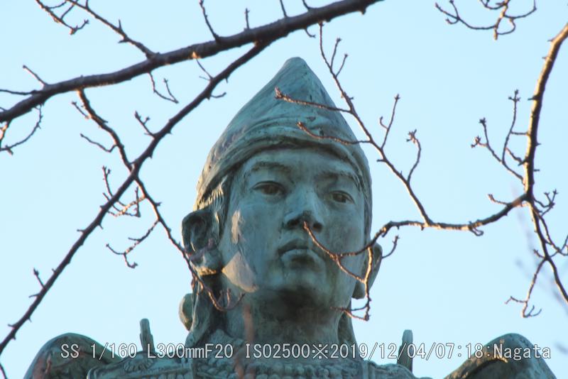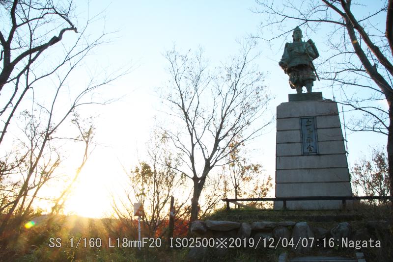 月イチの頂上だ。竹林コース→FM塔→頂上→300回記念登頂→楠公寺→南池→七曲りコース→下山。6Km、14,600歩コースだ。風が少し強かったので遠くの明石海峡大橋が微かに見えてた。楠正行公に朝陽が当たってた。