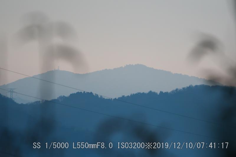 カメラスタンバイに時間を要したのでズームを伸ばす間も無かった。とりあえず露出補正だけした。 重いほうの400ミ 望遠ズームで金剛山を撮ろうと持参したが生憎の天候で霞んだ画像になった。