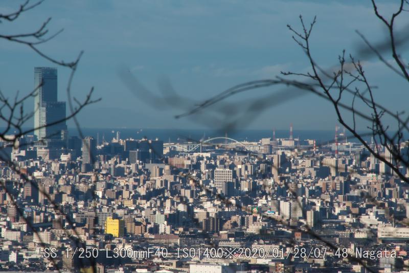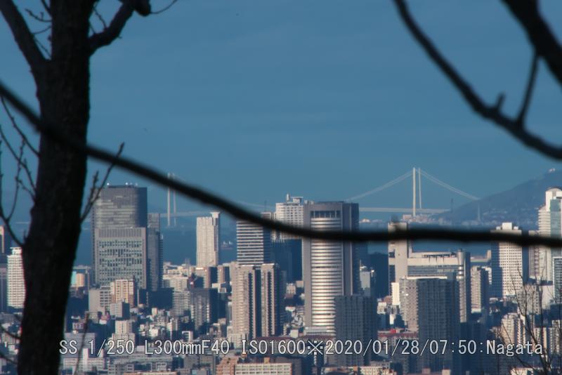 昨夜の雨で塵が流れ、今朝の強風で靄が流された。遠くの金剛山が過去に見た事無いぐらいに鮮明に写った。あべのハルカス、明石海峡大橋も鮮明だ。残念なのはレンズが300と短い。