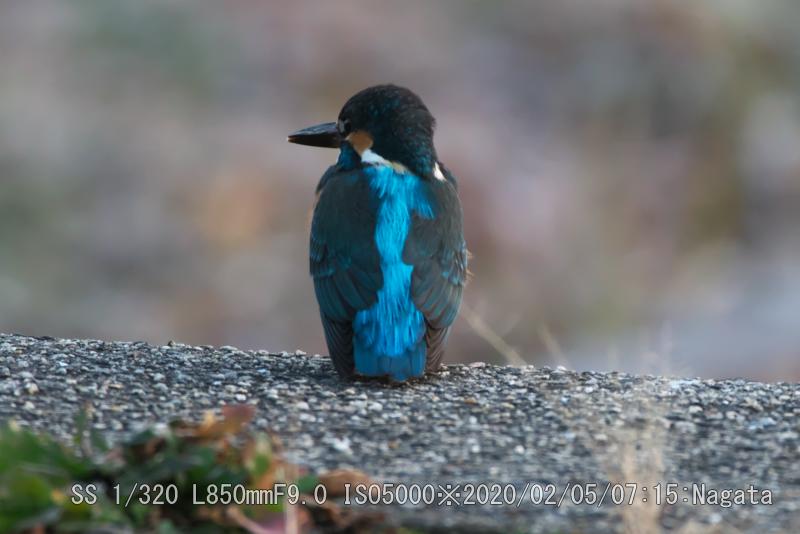 川背美・カワセミ 久しぶりに600ミリ+1.4コンバーターを持ち出した。さすがに手ブレが増えた。薄暗いのも原因だ。でもアップすると解像度が良いので気持ちが良い。背中越しに見ると、やはり「川背美」だ。 梅