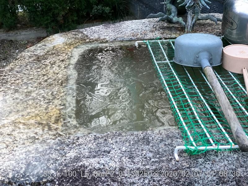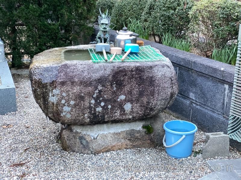 -3℃、この冬一番の寒さだ。「手袋を厚手にすれば良かった」と思うぐらい指先が寒さで痛かったが、15分もすると暖かくなった。辻の新池-3℃、頂上、FM塔-、北条小学校下りはいずれも-2℃だ。 飯盛山頂上FM塔下辻の新池 楠公寺 手水鉢、バケツに氷が張っていた。消火栓に「逆さツララ」を期待したが、水の滴りが無かったのだろう。 北条小下りコース FM塔下広場から北条小下りコース分岐へ降りた。小さな滝が有って氷が張る事を期待したが、全くツララは無かった。
