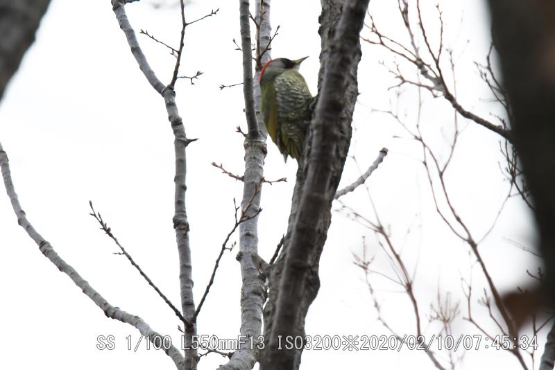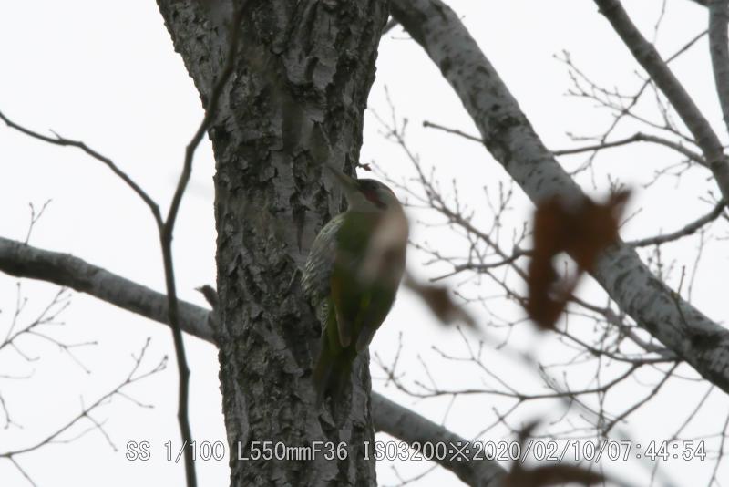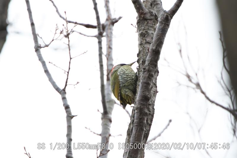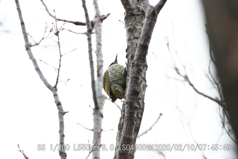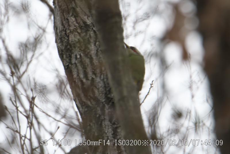 恋の季節かな。ドラミングが長い時間続いていた。樹木裏側に居た。徐々に回りながら上へ上がっていった。お陰で見つける事ができた。羽で丸まって見える。アオゲラを最初に見た時に似ている。