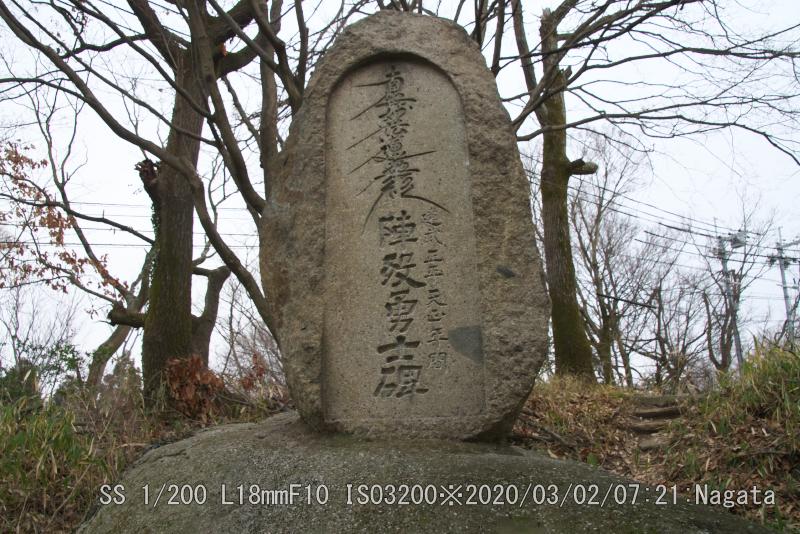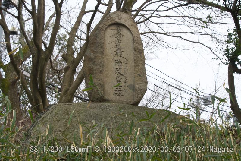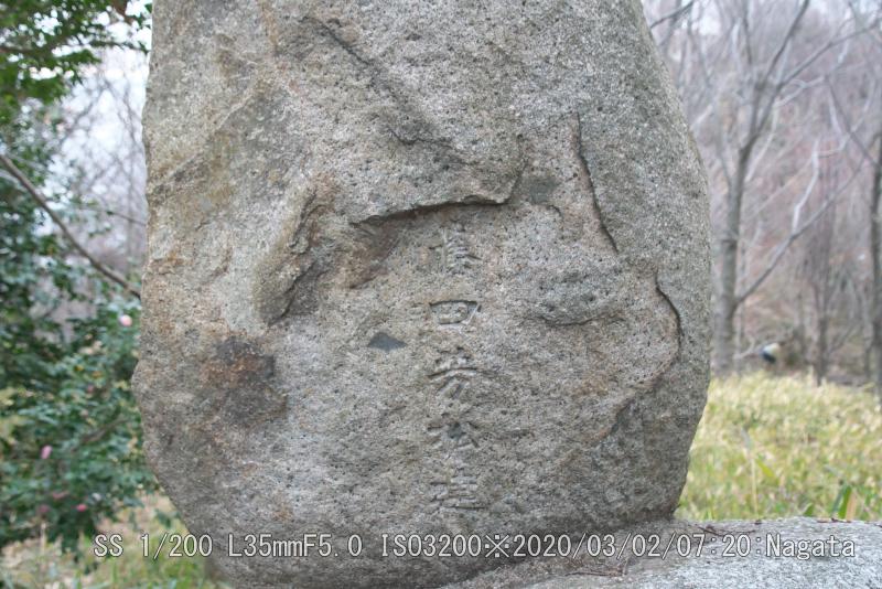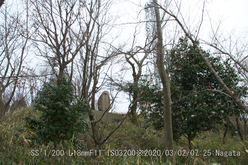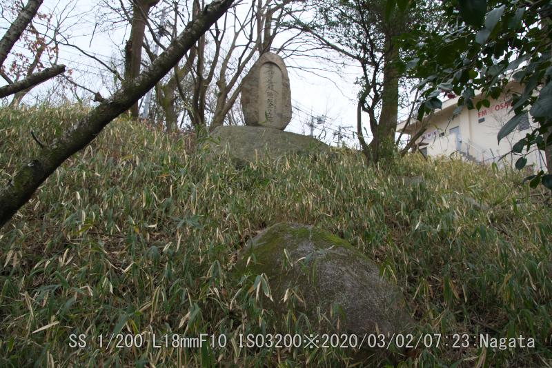 五色椿に気をとられて石碑を忘れた。むしろ此方が興味深い。頂上へ月イチで上がるので、ついで再撮影した。刻まれた文字を調べると歴史を感じる。「南無妙法蓮華経 陣没勇士碑 建武・正平・天正年間」☆建武:北朝時代(1334年から1338年)☆正平:南朝時代(1346年から1370年)☆天正:安土桃山時代(1573年から1592年)楠木正行は南朝方でこの石碑は正行が四條畷の戦いで破れて戦死した頃から信長の攻撃で飯盛城落城天正4年(1576年)の戦死者を弔ったと思われる。残念ながら建立した「藤田芳松」はネットで調べられなかった。※河内飯盛山(314m)の南側にNHKFM鉄塔があり広場の北側の石碑。石碑の前に五色椿が植えられている。