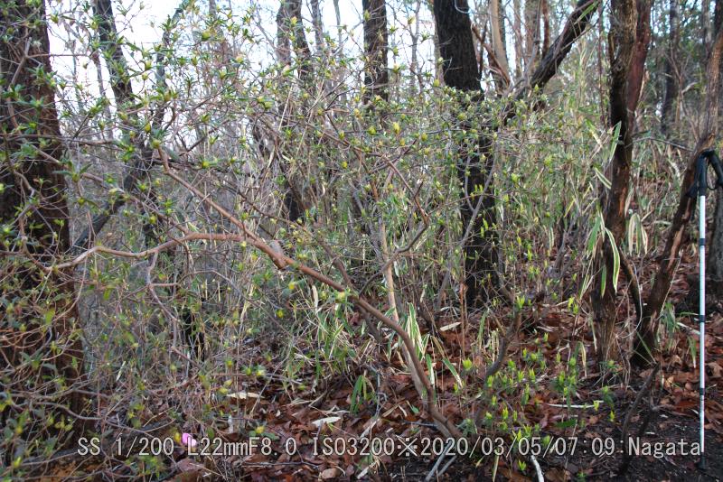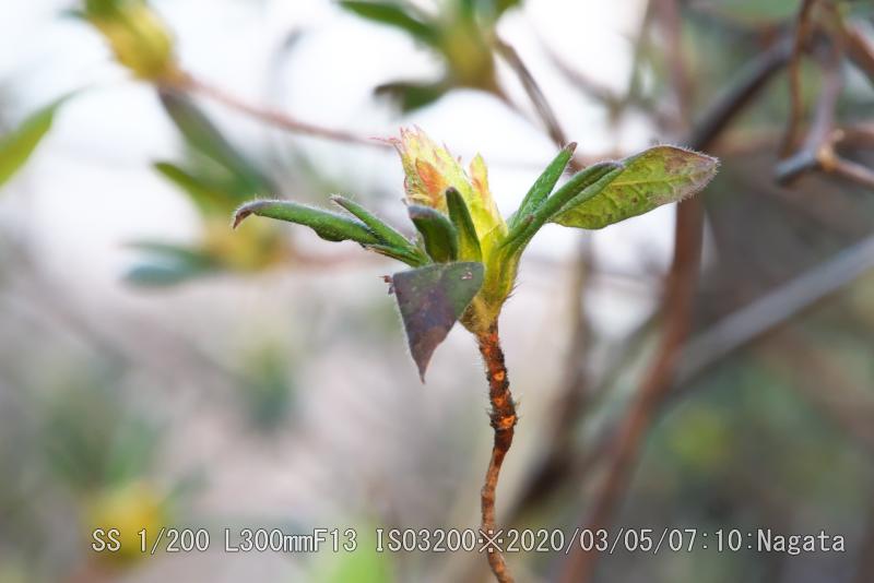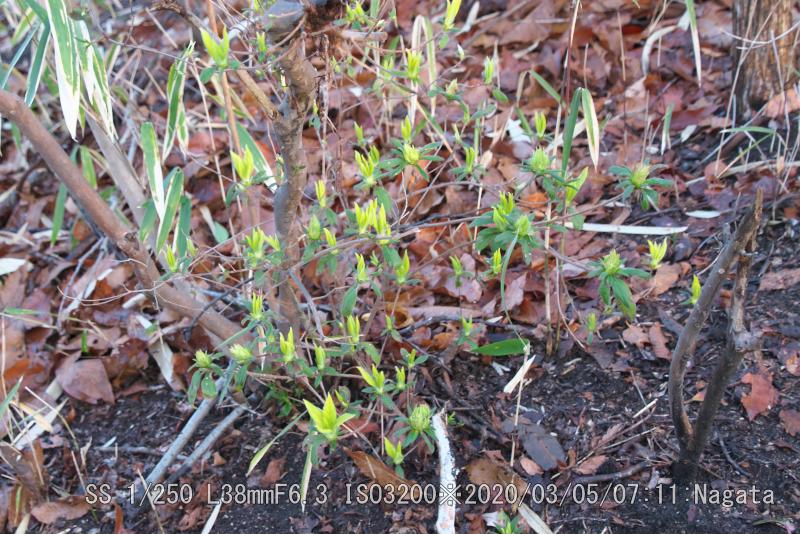花が一輪残っていたが春葉が出ていた。春葉は春に出て秋に落葉し、夏葉は夏から秋に出て一部は越冬するようだ。花は年中咲いているのを見かけるが時期は4月~6月のようだ。