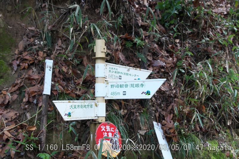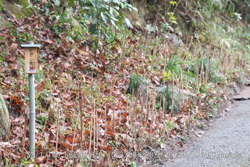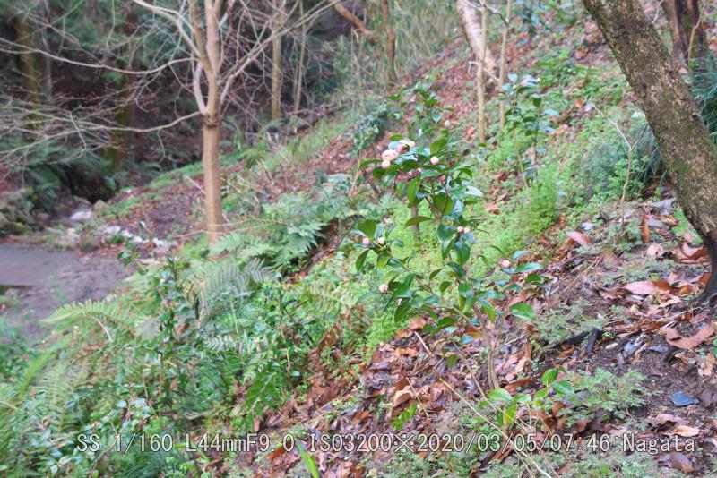 野崎観音さんへ下るコース分岐。ヒガン花坂と名付けられて彼岸花やゲンノショウコが植えられていた。オトメツバキを植えた主が整備したようだ。落ち葉を掃除したり雑草を刈っている主を時々見かける。感謝です。