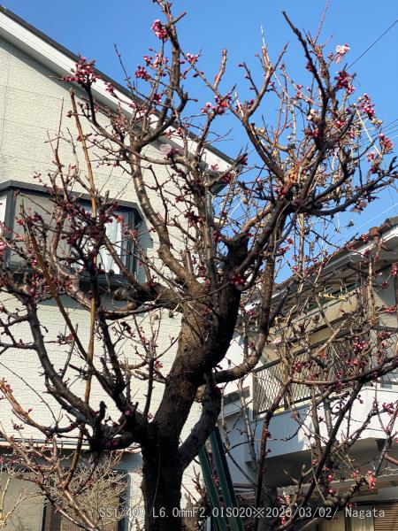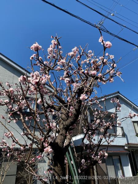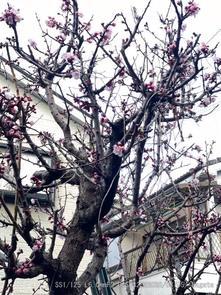 去年より1週間ほど早いような。2/24~3/9画像。震災の年に植えたから25年になる。枝が邪魔になるので伐採したら梅の枝ぶりに似てきた。花の質が綺麗ので杏子は豊作になりそう。