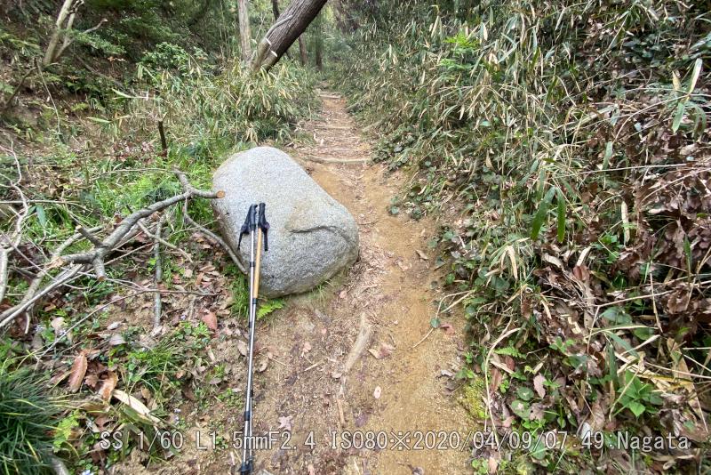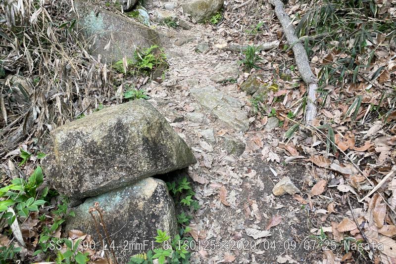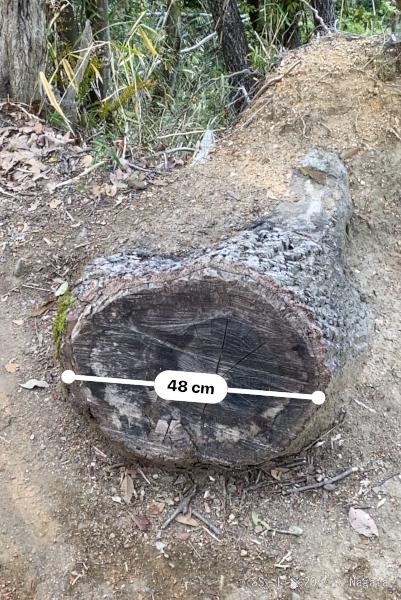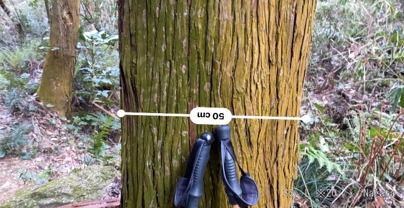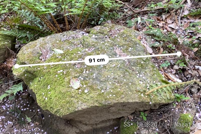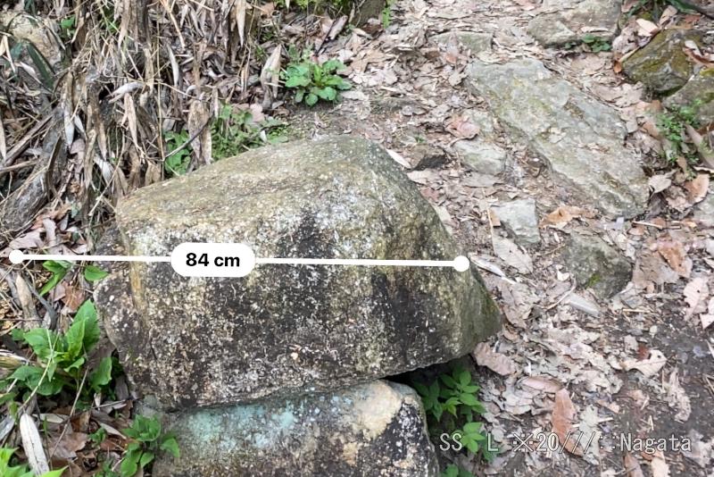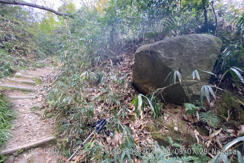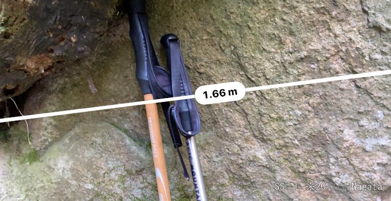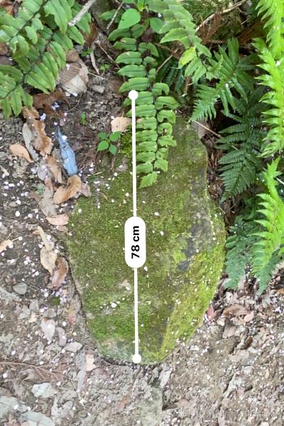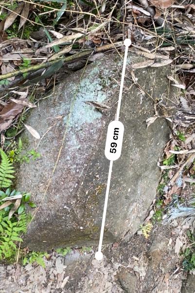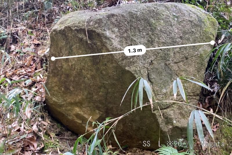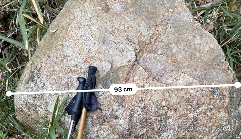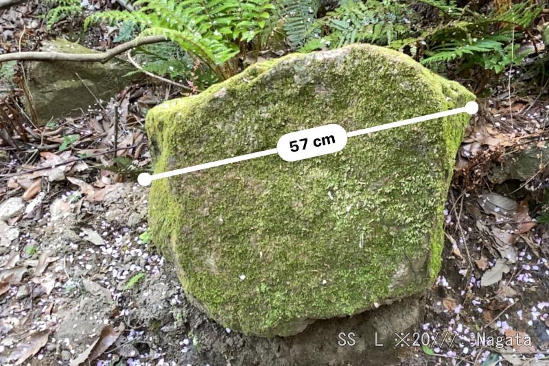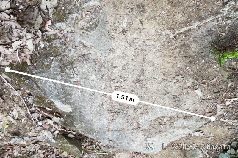 スマホの計測アプリで、竹林コースの落石を測ってみた。もともと、岩石の多い足場の悪いコースだ。