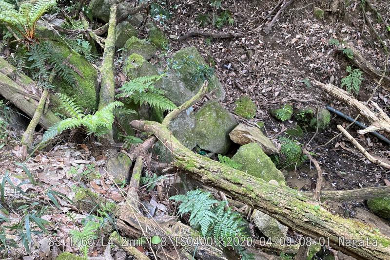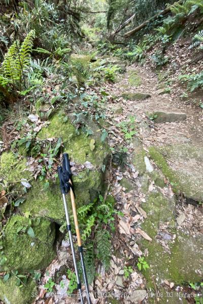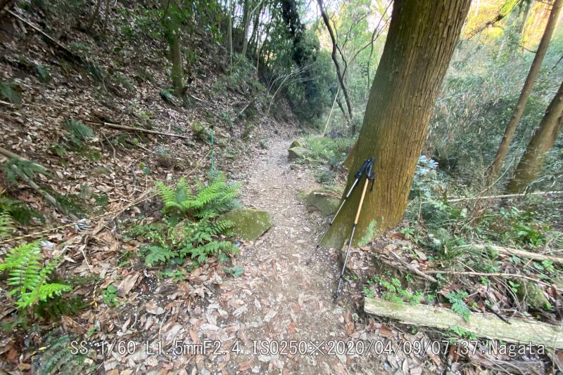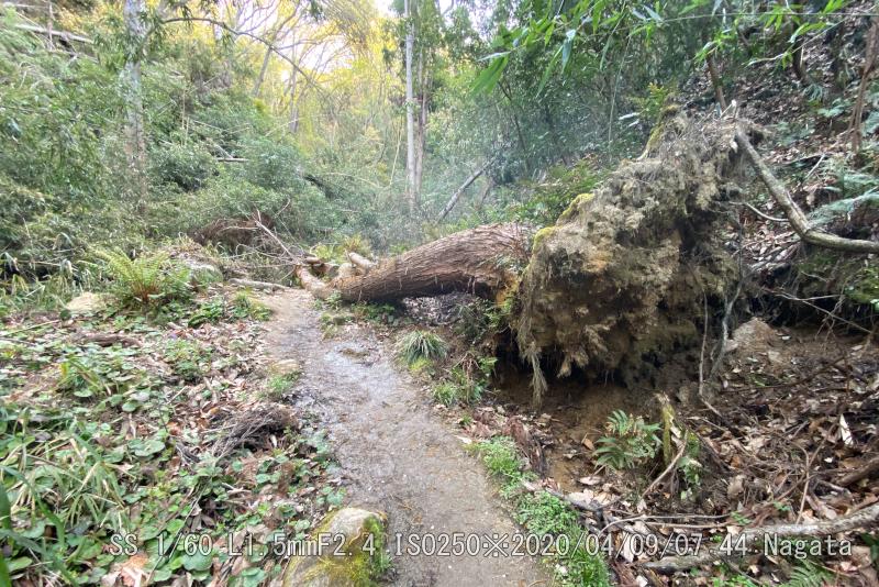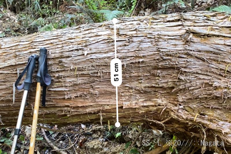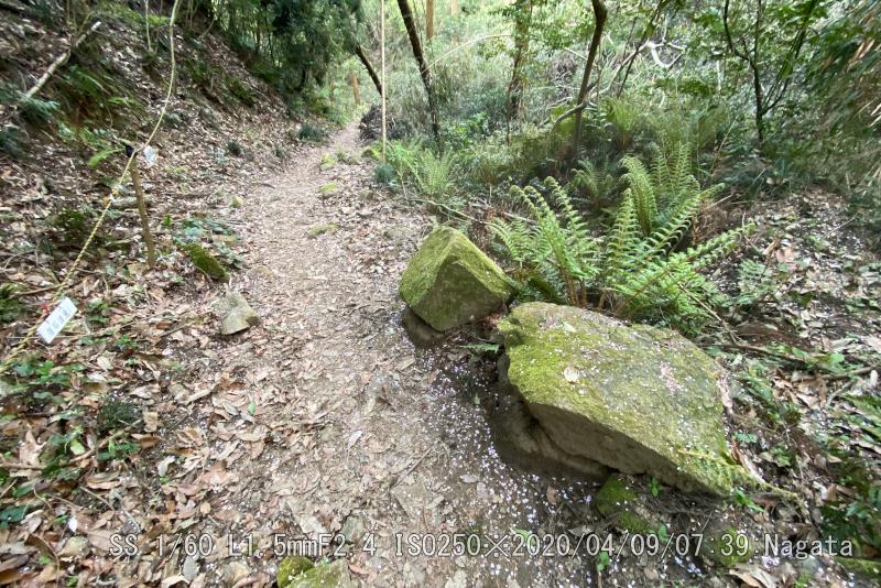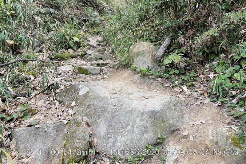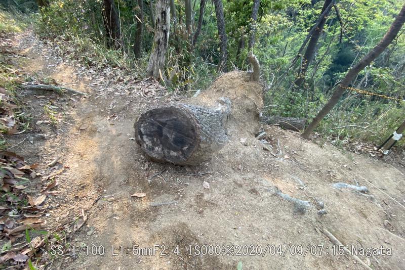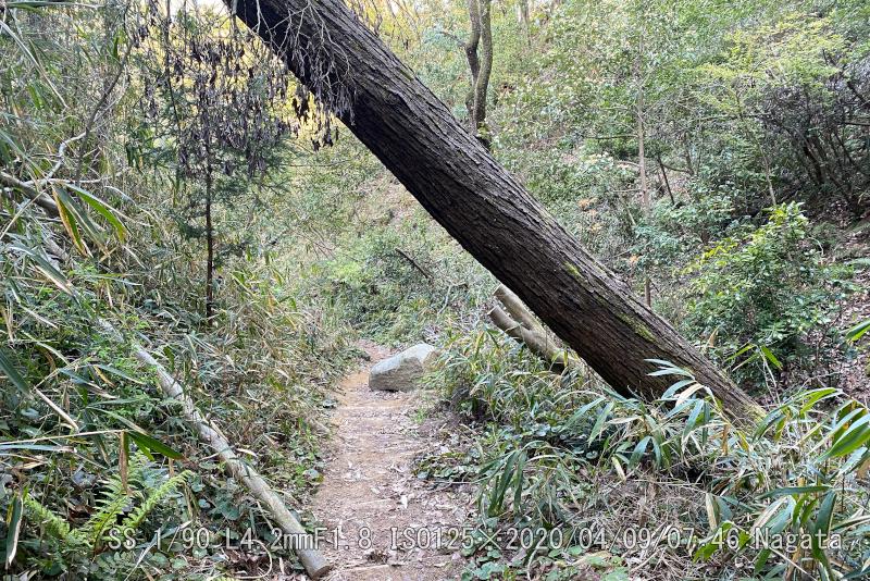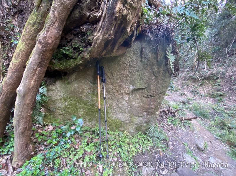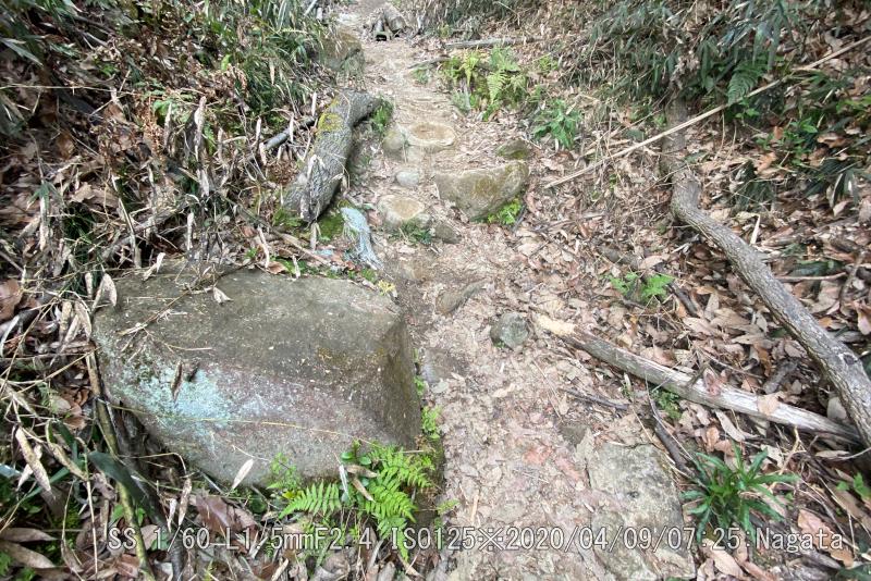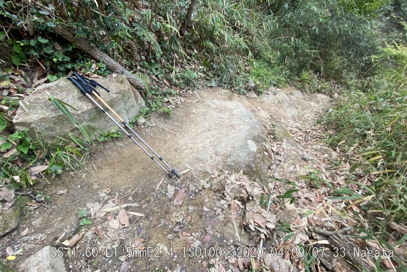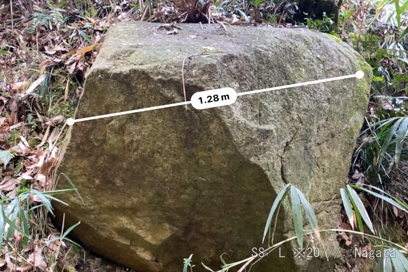 スマホの計測アプリで、竹林コースの落石を測ってみた。もともと、岩石の多い足場の悪いコースだ。