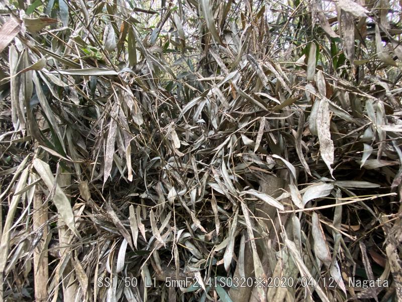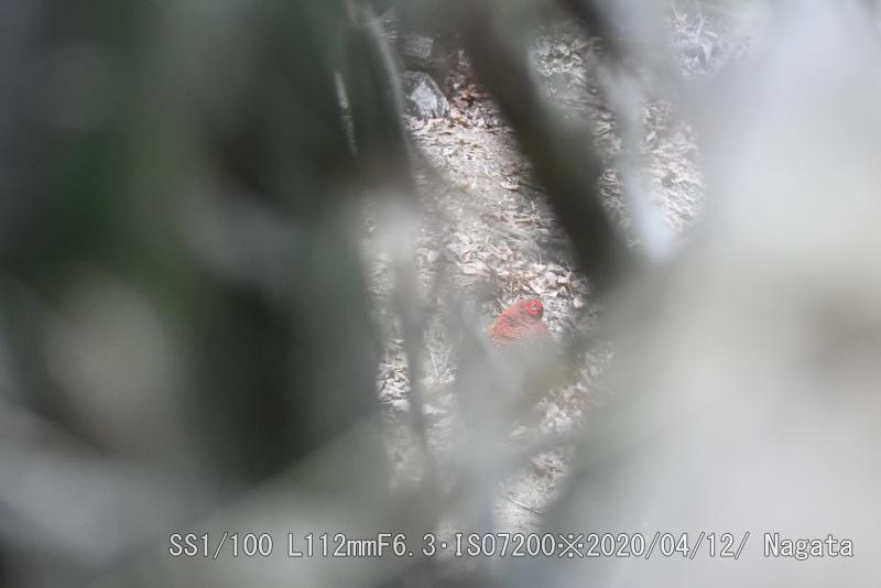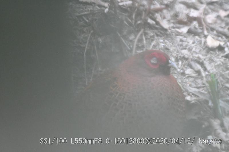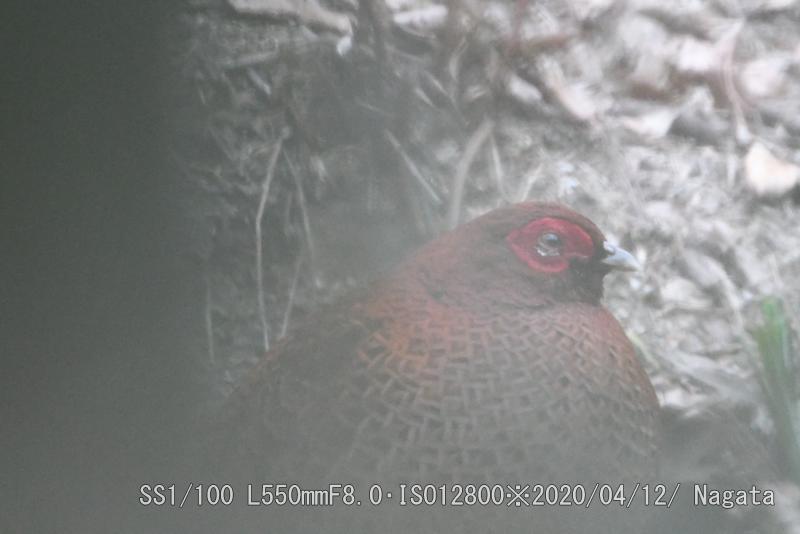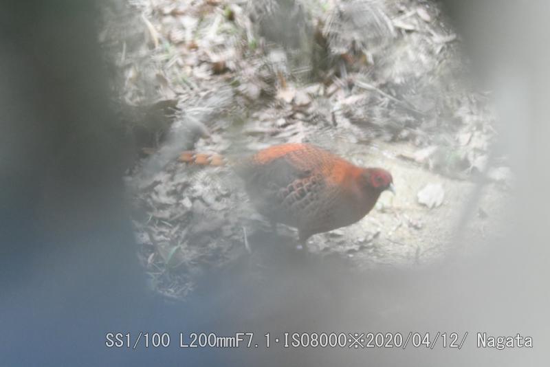 この隙間からピントを合わせた。地主さんが日増しに隙間を詰めているような気がする。でも、中でヤマドリがくつろぎを見かけるのも増えた。