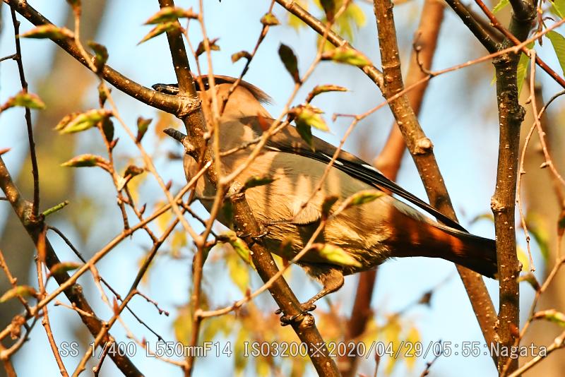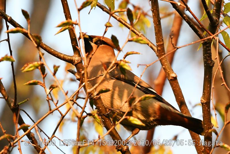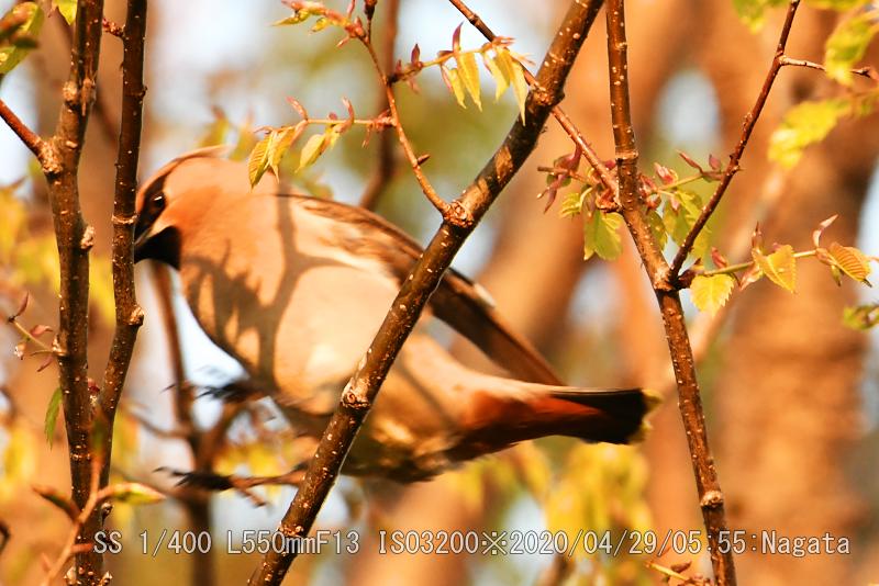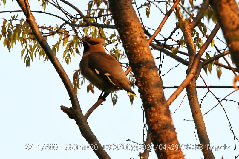 祝日につき休日にして深北緑地へキレンジャクを撮りにいった。先日と同じ木に留まっていた。朝日を浴びてしっかりと撮れたが、羽は綺麗に見せてくれなかった。冠羽は確認できた。