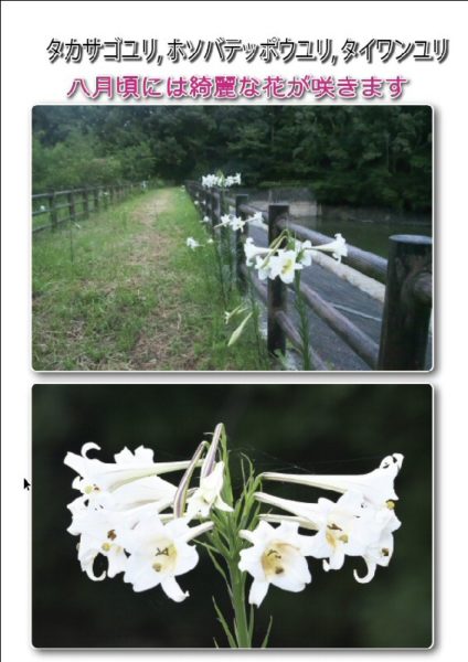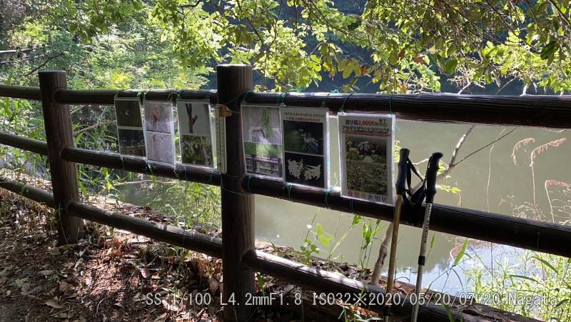 辻の新池周辺ハイキングコースで撮りためた写真をA4版ポスター6枚作成して新池側道の手摺りに貼り付けた。