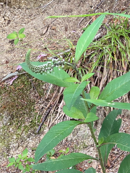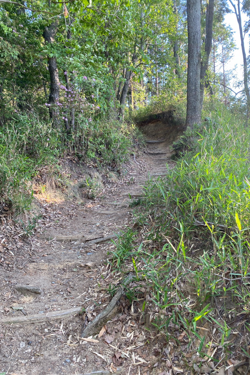 珍しいトラノオ、ナルコユリなど野草や飯盛城跡へ上がる竪堀が点在する。ほぼ、毎日のように上がる道の変化に飽きが来ないが、やはり疲れる。最近は頂上の途中で折り返す。8,000歩、4Kmが目安だ。