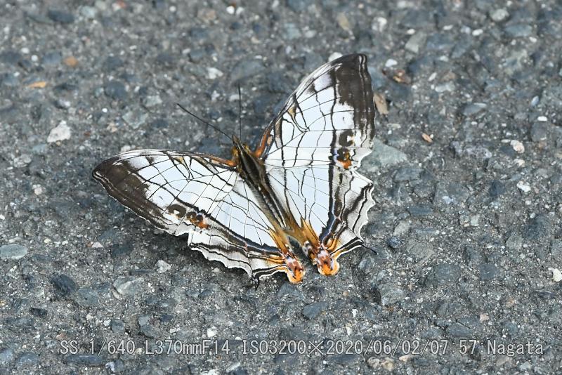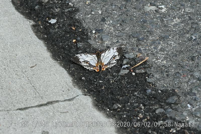 チョウ目(鱗翅目)タテハチョウ科。南国の蝶で近畿辺りが北端のようだ。ハイキングコース入口付近の民家前、湿気を吸っていた。最近に近辺で見かけたが、写真は2回目だ。