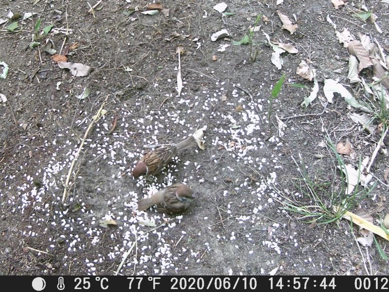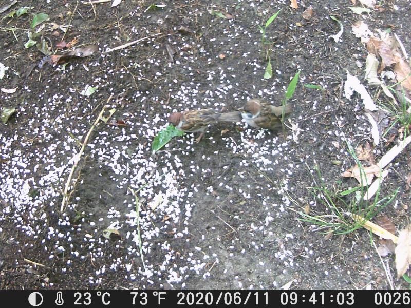 数日前から親子のスズメが来るようになった。未だ餌をおねだりしているようだ。ただ、麦はあまり食べない。
