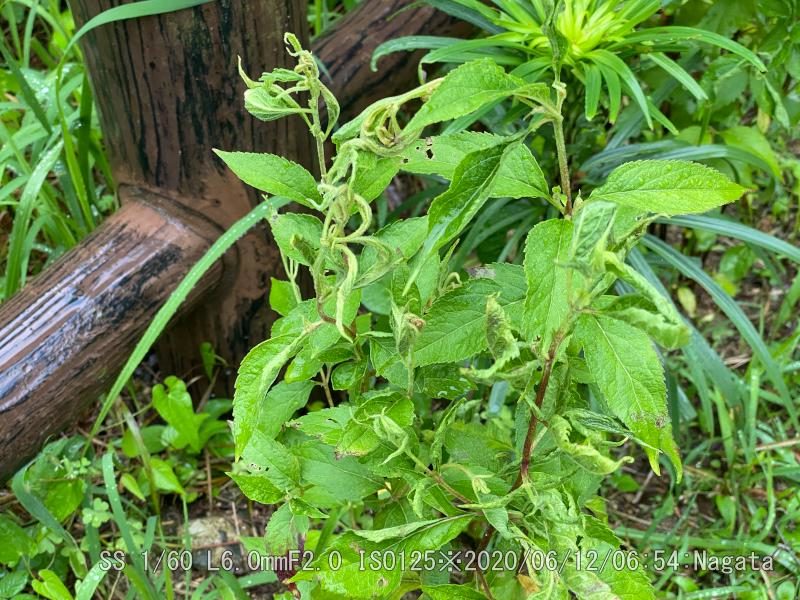 日照りで弱っていた。水を2日置きにかけたが間に合わなかった。今日の雨で少しは凌げるだろうか。フジバカマは生長が悪い。