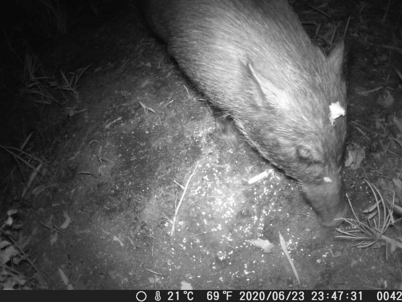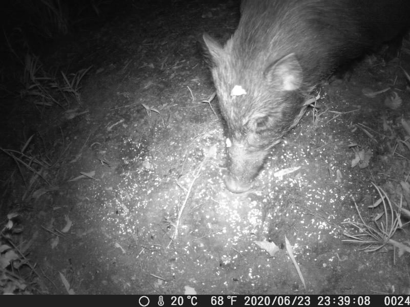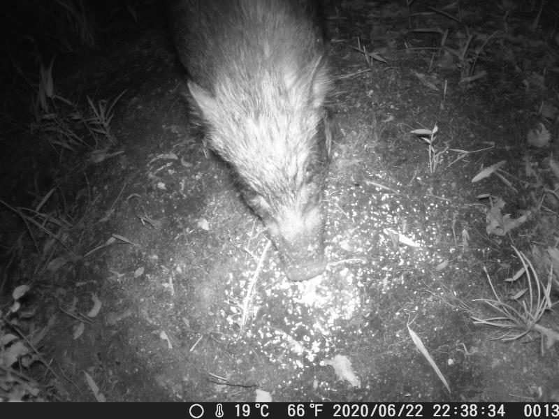 イノブタが餌を3日に渡って残さず食べた。その間ヤマドリが訪れた形跡はない。アライグマが初お目見え。一瞬だけど。