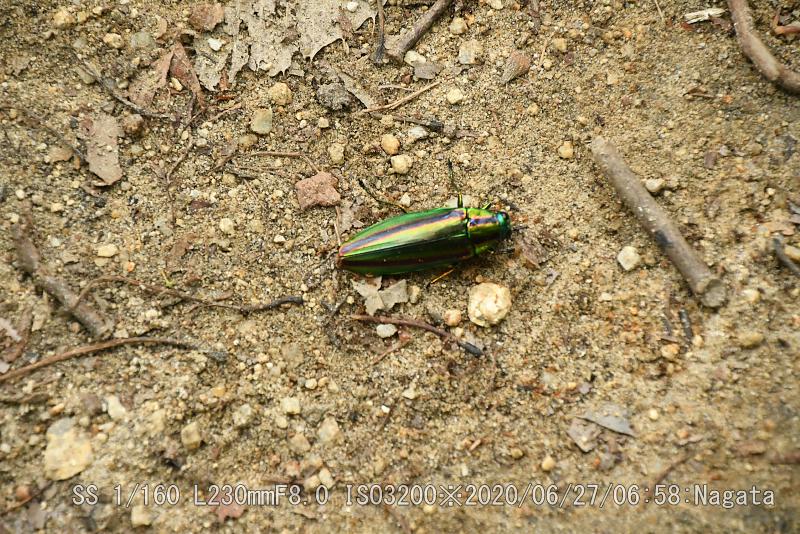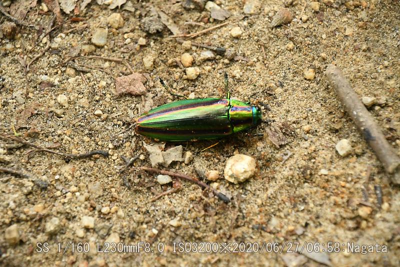 コウチュウ目タマムシ上科 登山道に落ちていた。まだ息は有りそうだった。前回は9月だった。昆虫好きの孫♂小五にLINEで画像を送った。