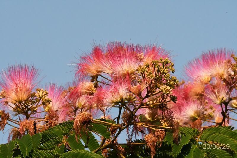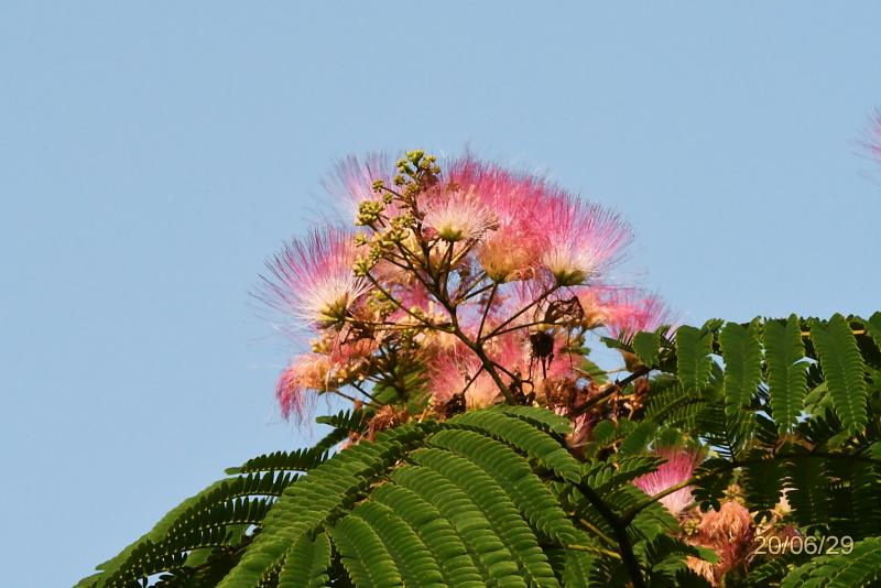 朝の涼しい日陰で草刈りを1時間。日が射してきたので暑くなった。帰りがけにネムノキが朝日に輝いて見えた。やはり、400ミリズームは解像度、色彩も良い。