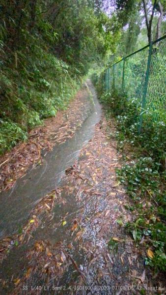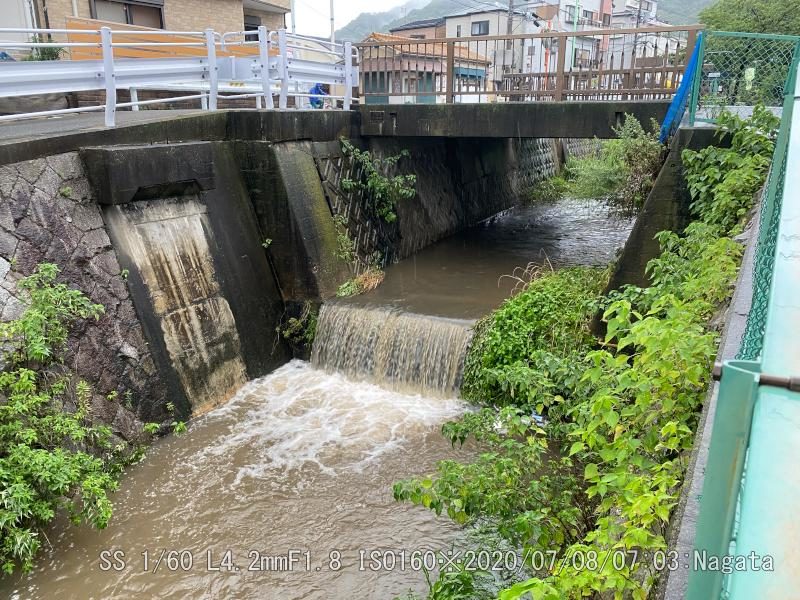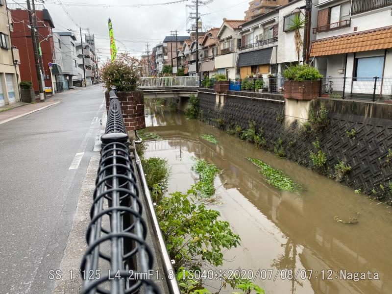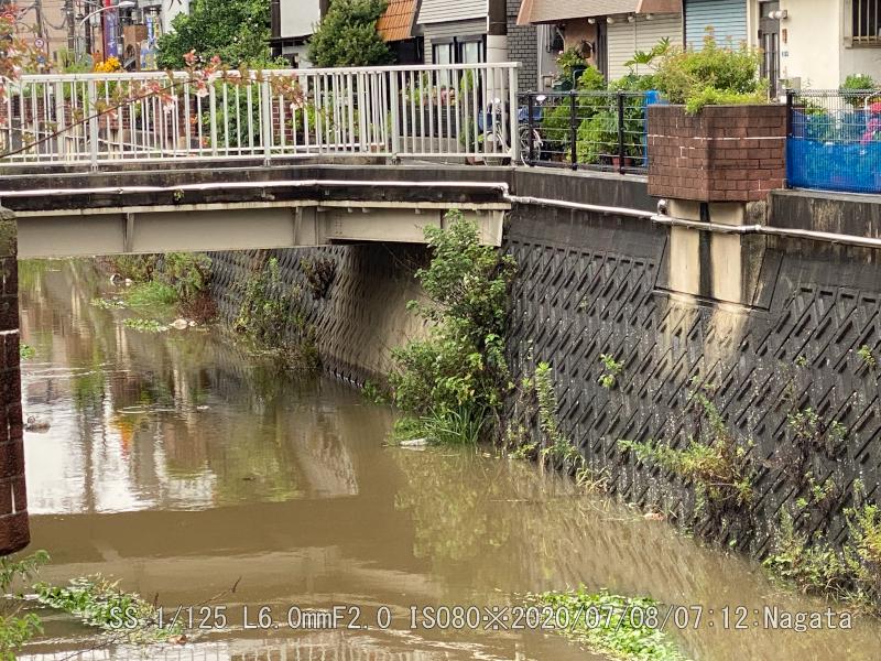 朝の上りは横殴りの雨だった。雨が降った割りには水嵩は増えていない。登山道は川のように流れていた。野崎駅近くは水位は高くはない。それでも流れはよどんで溜まった感じ。ピークは過ぎたかも