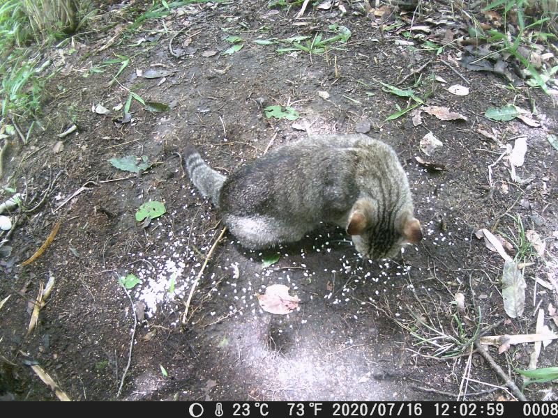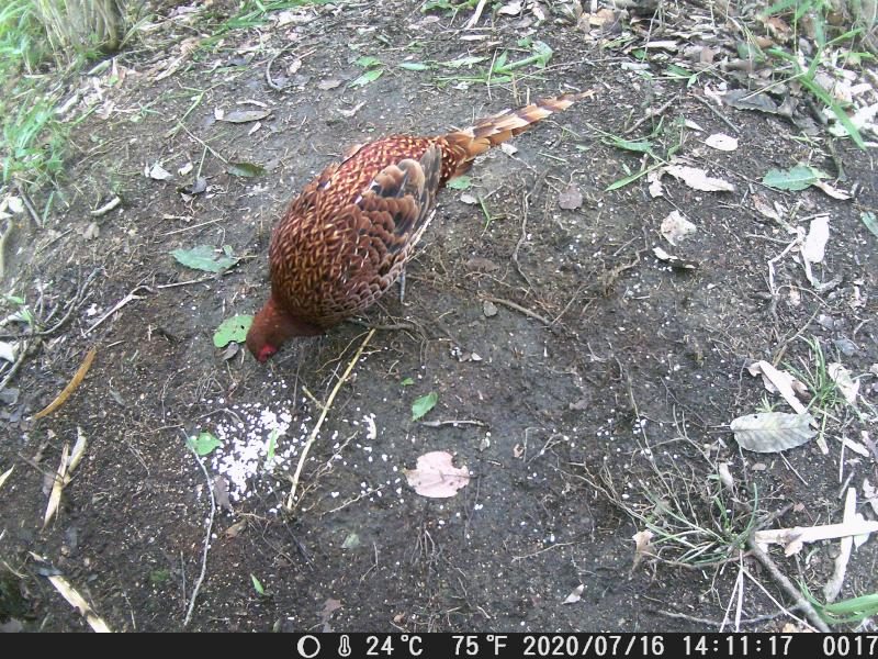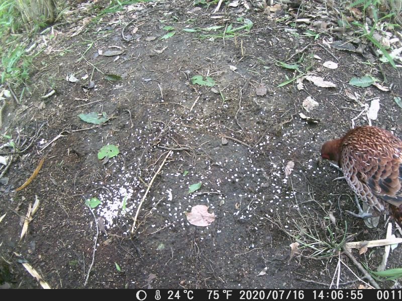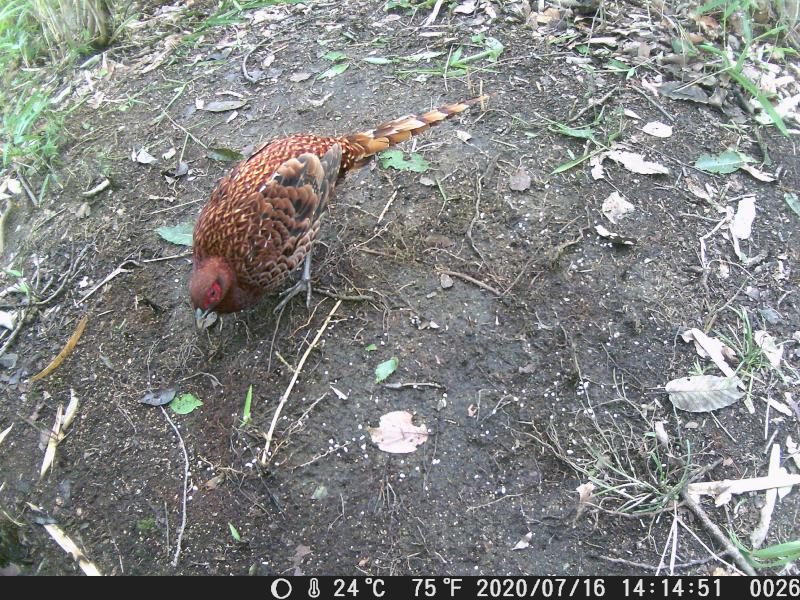 猫がまた来た。ヤマドリは15分ほどで餌を完食した。