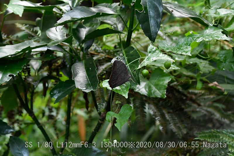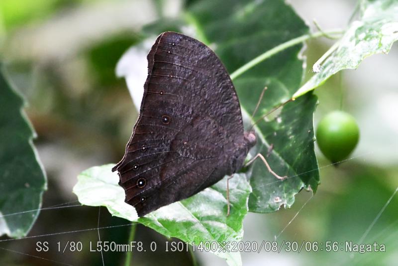 以前にオオムラサキを発見した場所だ。朝、薄暗いのでひょっとしてオオムラサキ?と淡い期待を持った。撮って初めて分かった。ピントの合い辛い黒っぽい蝶だ。蝶の特徴である、羽根を閉じて止まる。触覚の先が棍棒のような球状だ。このブログで珍しく一番閲覧数のおおいページが「蝶と蛾の違い」