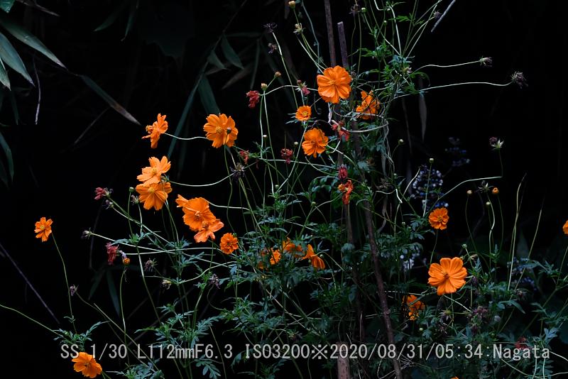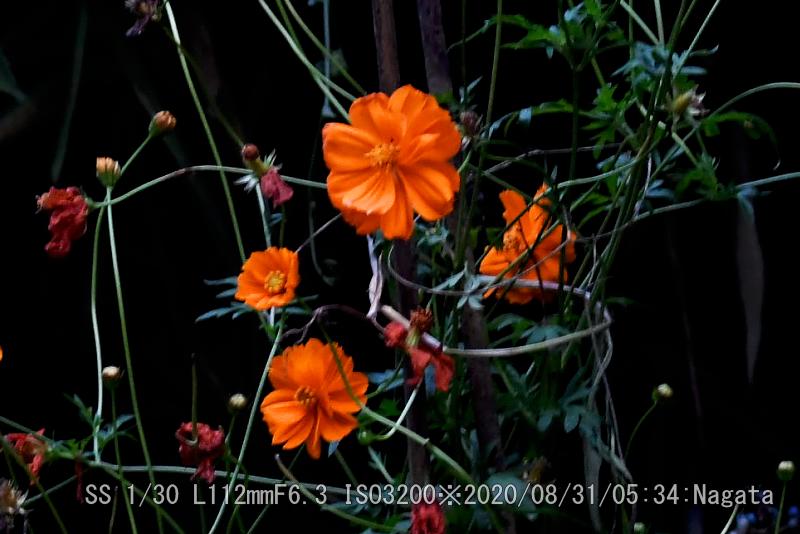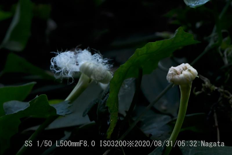 朝が早い、カラスウリの花が縮まないで残っていた。そのすぐ下でディモルフォセカのオレンジが綺麗だ。